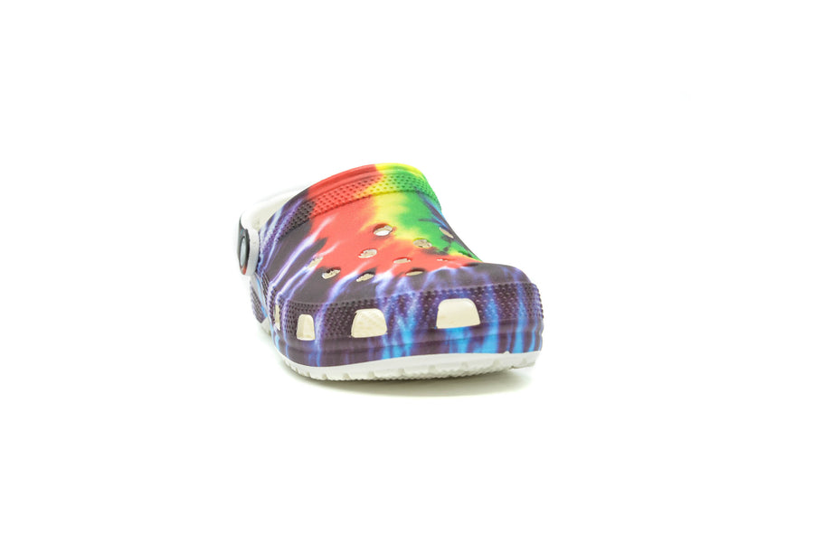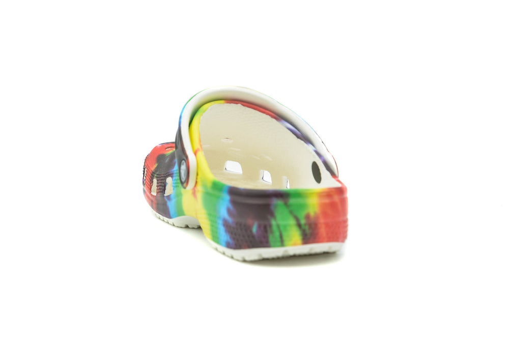 Walk on the beach, or walk to a meeting, Crocs original Classic tie dye multi clogs are the most comfortable and versatile shoes you'll ever own. Experience this ultra-hip Italian styling with a heel strap that can be rolled forward or left behind. Vented so air passes through, keeping feet cool. Orthotic molded footbed is bacteria & odor resistant.