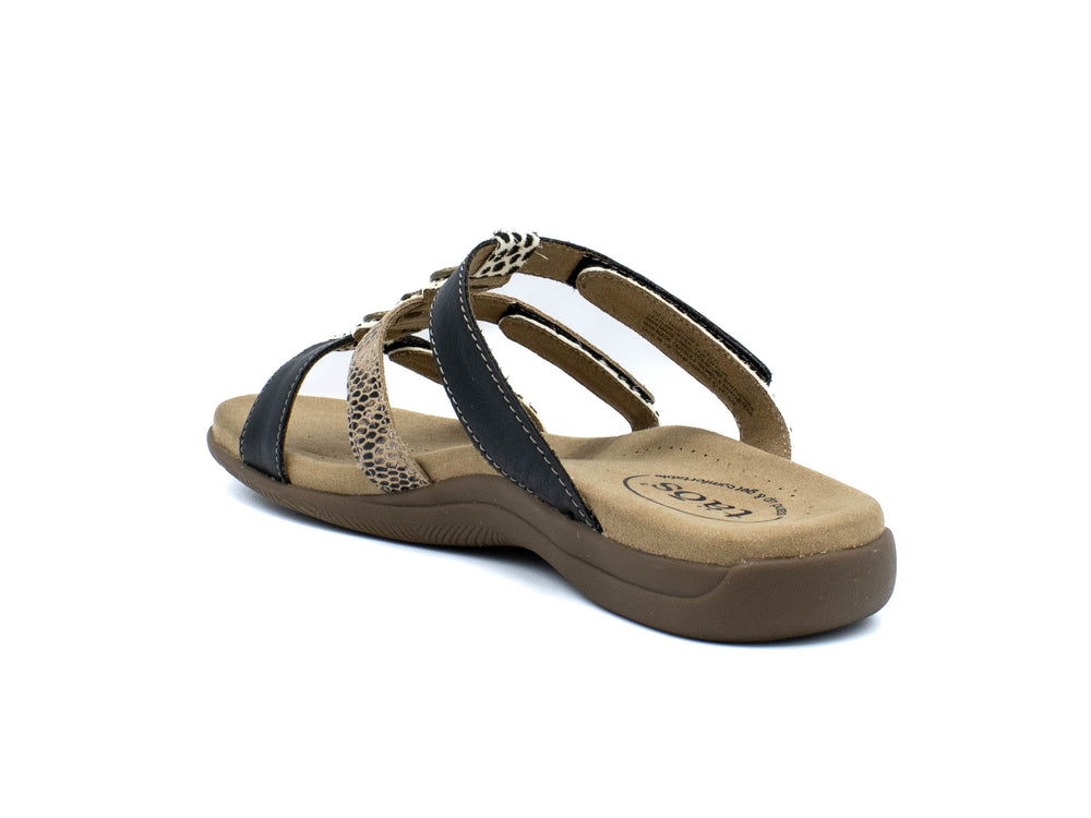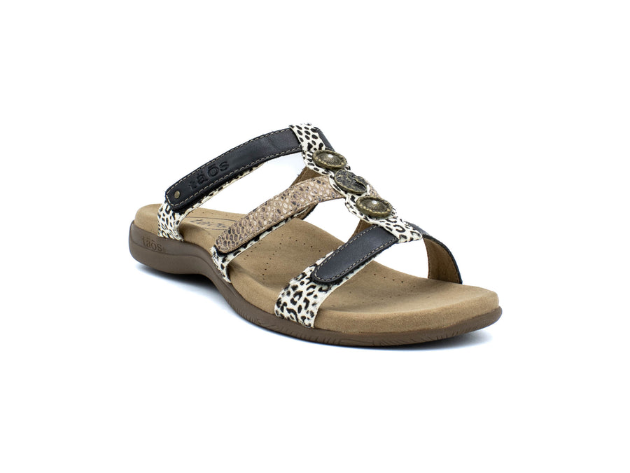 Prize 4 is our premium leather slide sandal with 3 bands of hook and loop straps offering complete adjustability. Pounded medallion hardware accent the multi-coloured strappy upper offering a stylish, versatile look. Featuring an embossed microfiber footbed that is treated with an antimicrobial shield, keeping your feet cool and dry, with soft, cooling gel padding on top of polyurethane for maximum shock absorption. The outsoles are flexible, durable rubber.