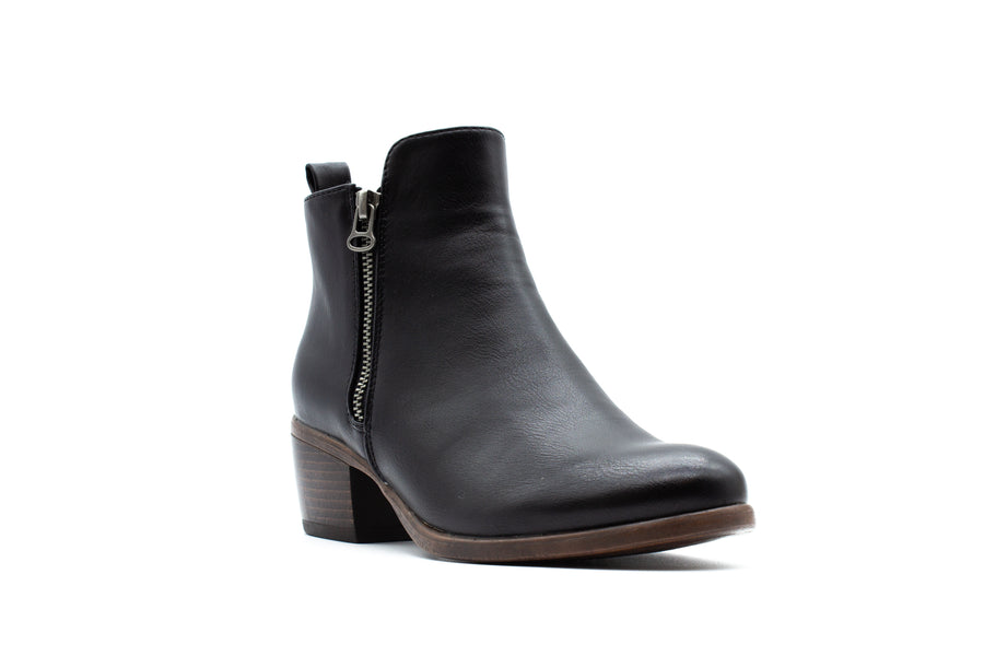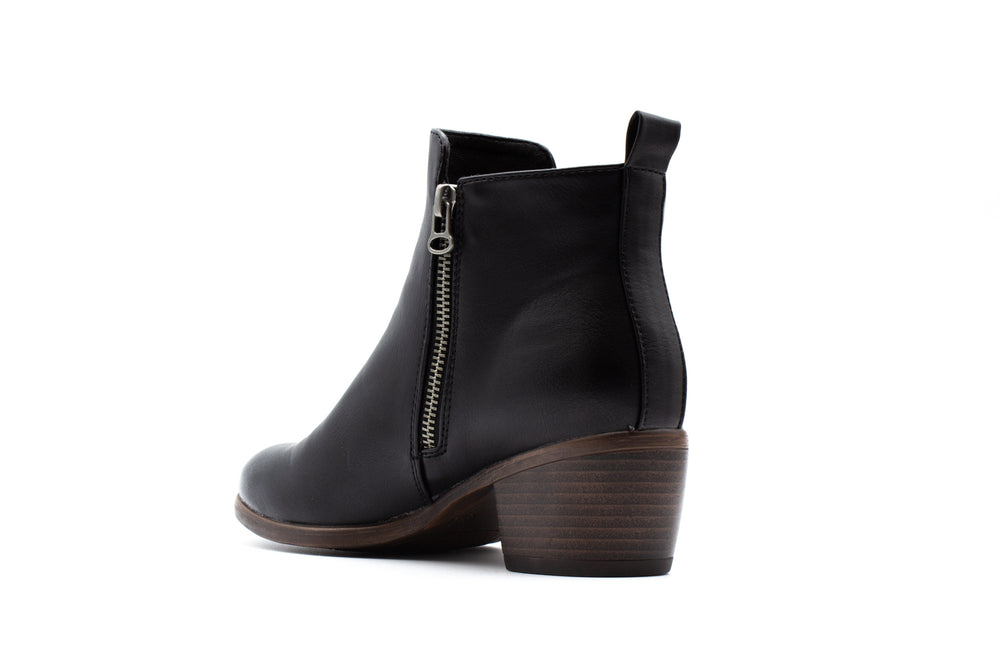Pair our Hailey-05 heel booties in Black with just about anything in your closet. They have a comfortable soft sock padding, durable rubber outsole, and short faux fur lining making it easy to walk in all day or night. The functional inside and outside zipper allows the bootie to be taken on and off easily.