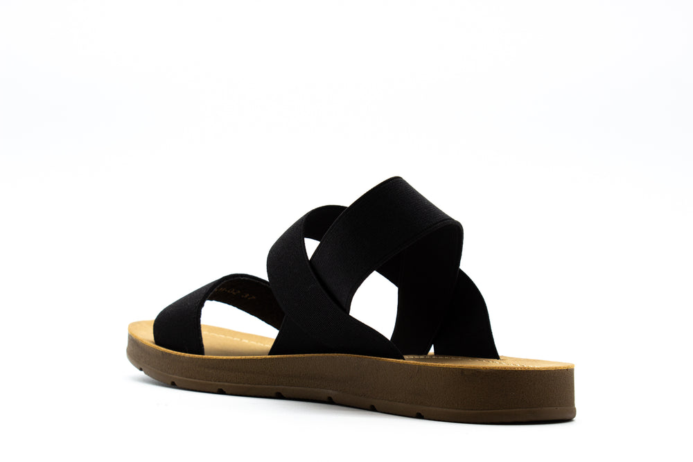 The Remi sandal in black is an everyday staple ideal for any outfit. This lightweight sandal has an an elastic upper and flexible outsole, making it perfect for everyday wear.