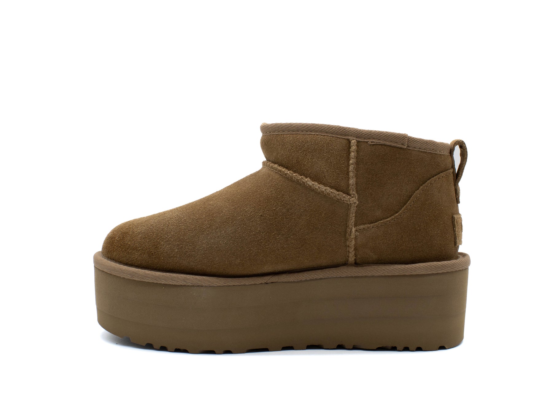 The Classic Ultra Mini Platform boot from UGG Australia is a modern interpretation of UGG's icon. The Ultra Mini reaches new heights with a leg-lengthening 2 inch platform. Offering a bolder look than ever before, it's made with the same rich suede as the original, plus UGG's UGGplush wool blend for signature softness.