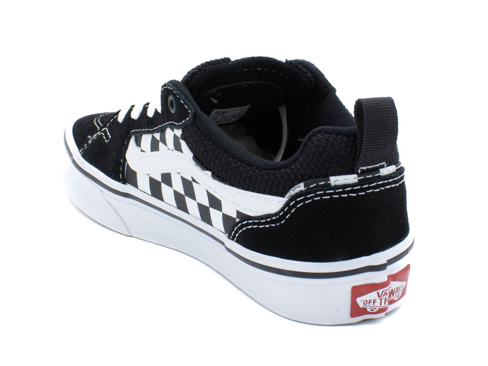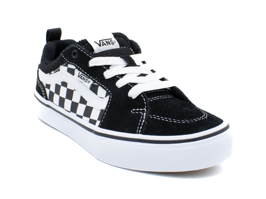 Show the world you know what's up with the rebel style of the Filmore black/ white lace up sneakers from Vans. You can't go wrong with a classic canvas sneaker and the Filmore from Vans is a versatile choice. This low-top will pair with nearly any casual outfit! This style combines the original and now iconic Vans low top style with sturdy canvas uppers, metal eyelets, and signature rubber waffle outsoles.