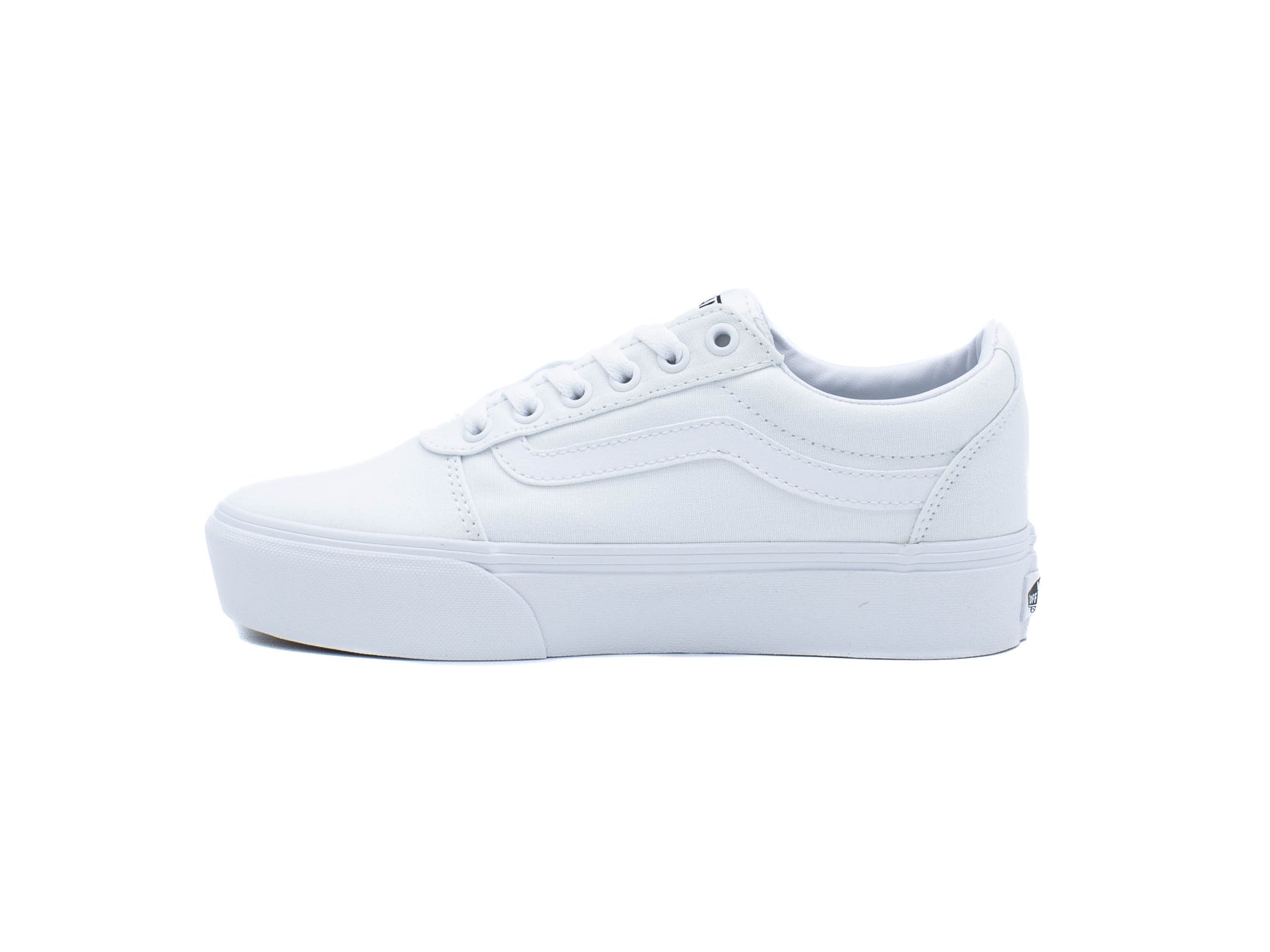 Show the world you know what's up with the rebel style of the Ward Platform white/ white lace up sneakers from Vans. You can't go wrong with a classic canvas/ suede sneaker and the Ward from Vans is a versatile choice. This low-top will pair with nearly any casual outfit! This style combines the original and now iconic Vans low top style with sturdy canvas/suede uppers, metal eyelets, and signature rubber waffle outsoles.