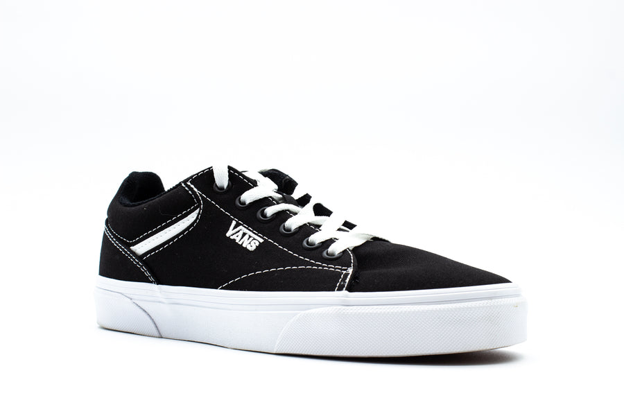 Show the world you know what's up with the rebel style of the Seldan black/ white lace up sneakers from Vans. You can't go wrong with a classic canvas sneaker and the Seldan from Vans is a versatile choice. This low-top will pair with nearly any casual outfit! This style combines the original and now iconic Vans low top style with sturdy uppers, metal eyelets, and signature rubber waffle outsoles.