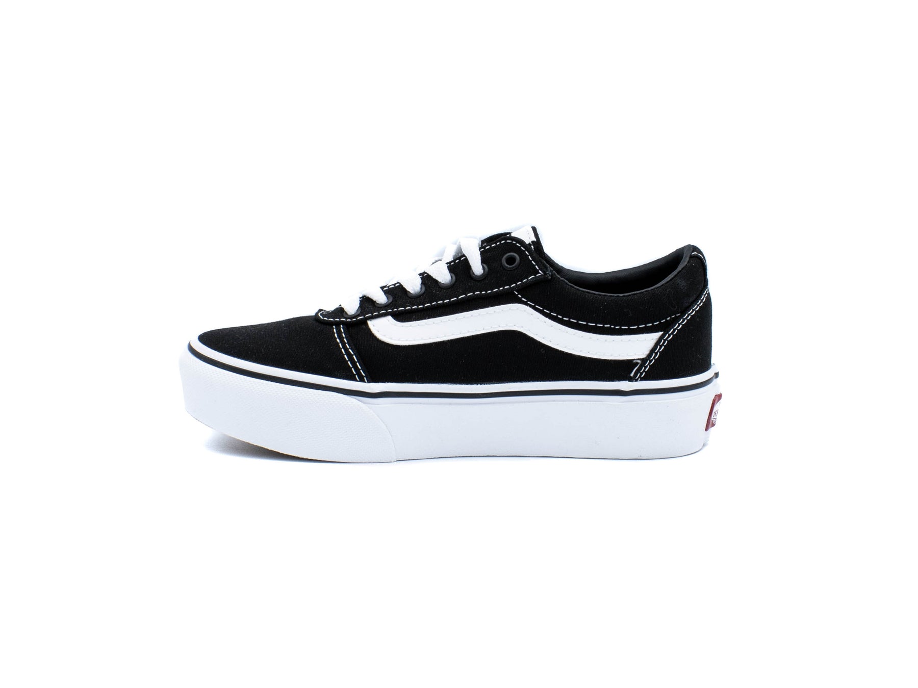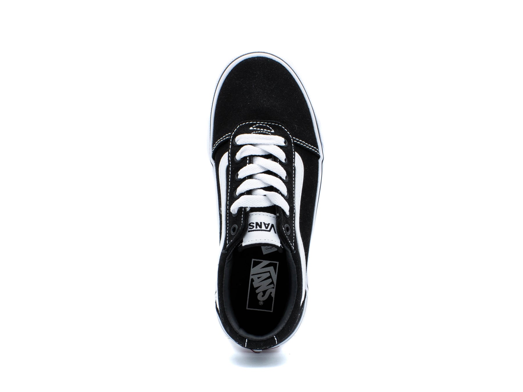 They can show the world they know what's up with the rebel style of the Ward black/ white lace up sneakers from Vans. Featuring combination canvas upper. Lace up closure for a secure fit. Padded collar for extra comfort. The Ward lace up sneaker is designed with a vulcanized original waffle outsole.