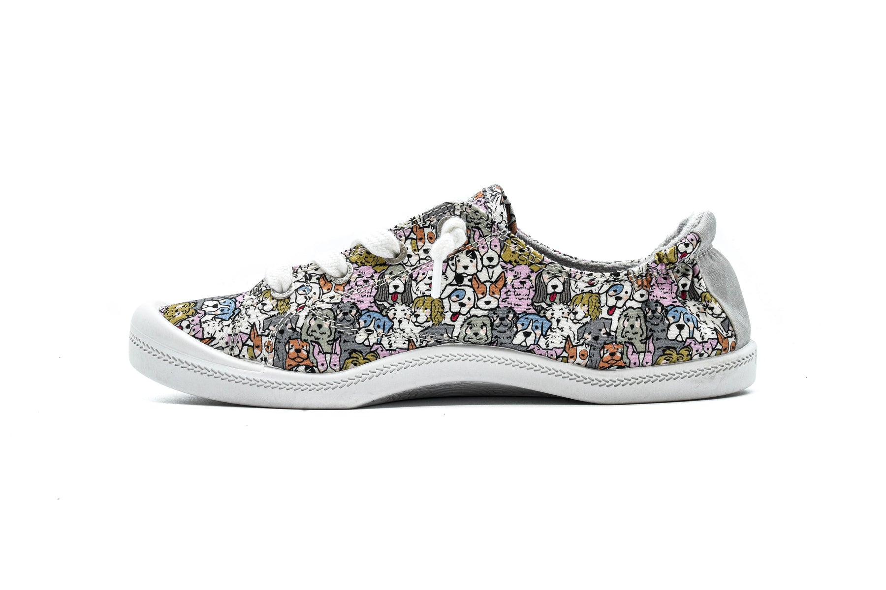 Add a pup of color to the mix with the BOBS from Skechers™ Beach Bingo - Mutt Mixer shoe. This casual slip-on sneaker features a soft canvas upper with an allover 'Mutt Mixer' print and a cushioned Memory Foam comfort insole.