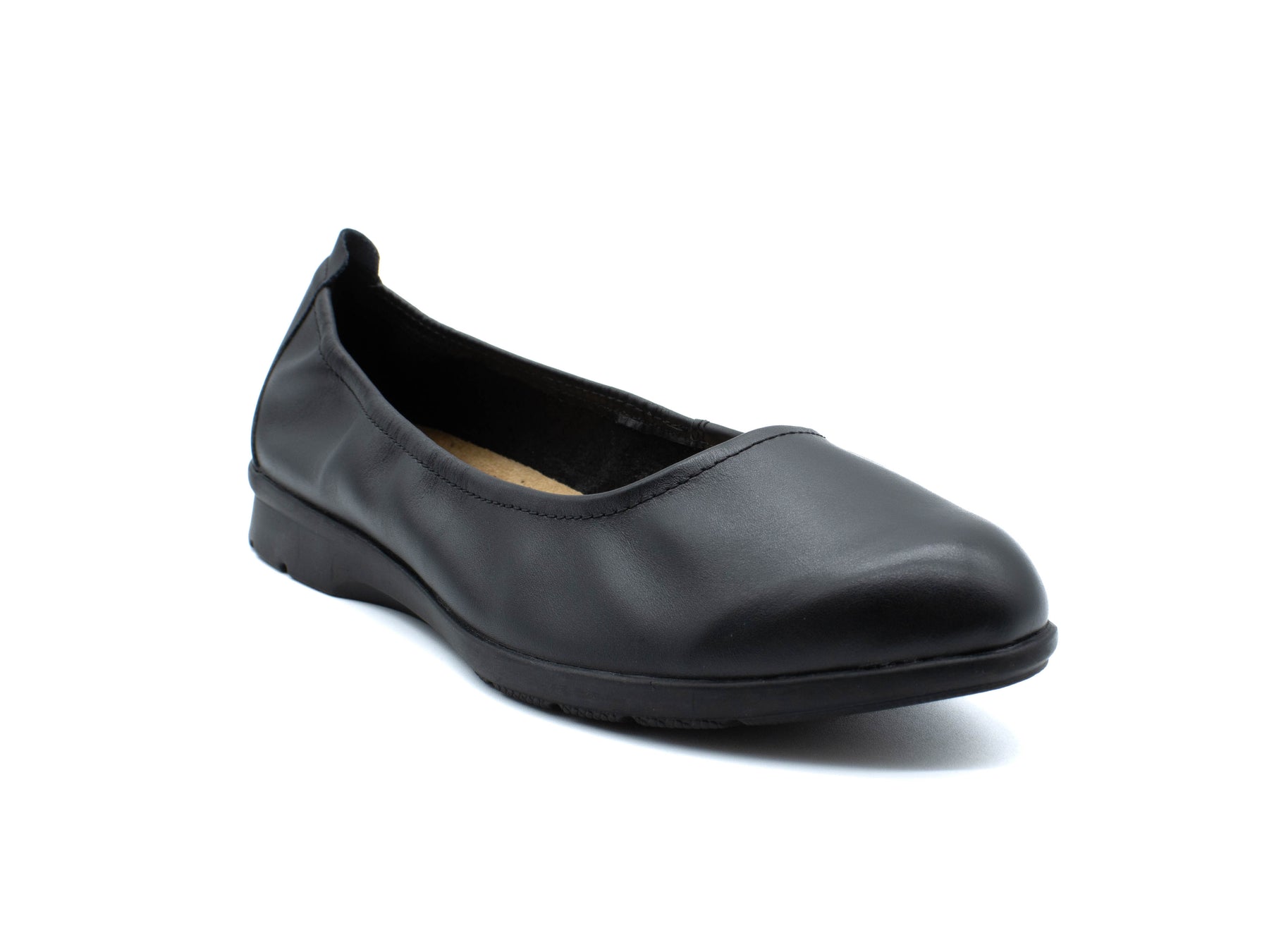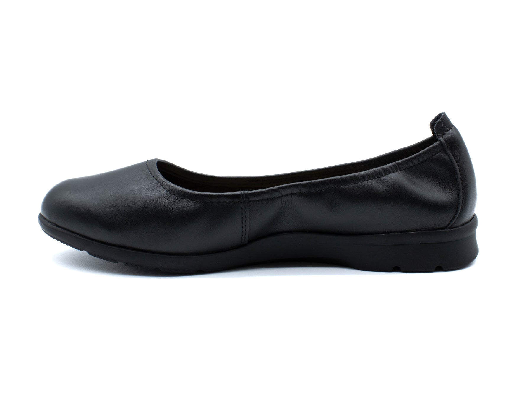 With the striking slender silhouette design, the Jenette Ease Casual black flat from Clarks are sure to bring a contemporary twist to your classic style. Featuring a genuine leather upper with a breathable leather and textile lining. Cushioned insole for all day comfort. A classic round toe styling with a durable synthetic outsole.