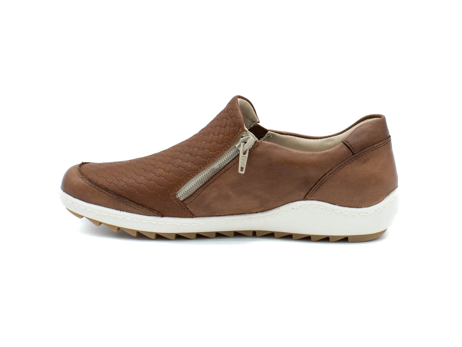 Slip on loafer with side zipper for easy access. Style suits any occasion with casual look. In sole is removable to fit custom made orthotics, upper material is leather with medium width fitting.