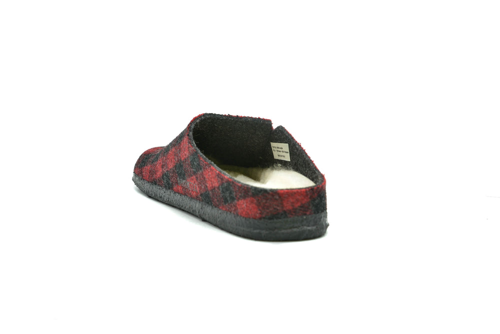Winter or summer slipper? The Zerrmatt plaid shearling slippers from Birkenstock is both! To ensure that you can safely potter round the house all year, the sole is dipped in latex using a special process, which makes it flexible and gives it slip-resistant properties. Featuring a wool felt upper. Removable, anatomically shaped cork-latex footbed.