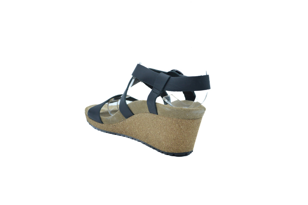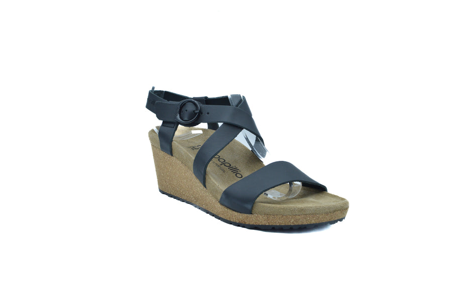 Meet the Sibyl, a strappy wedge heel sandal from Papillio. Stay comfortable and stylish with a lightweight footbed that promotes proper pressure distribution. The delicate circular buckle is an elegant eye-catcher to dress up any outfit. The upper is made from high-quality, smooth leather.