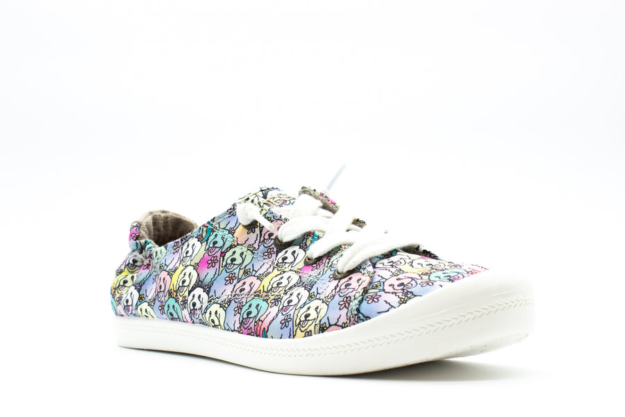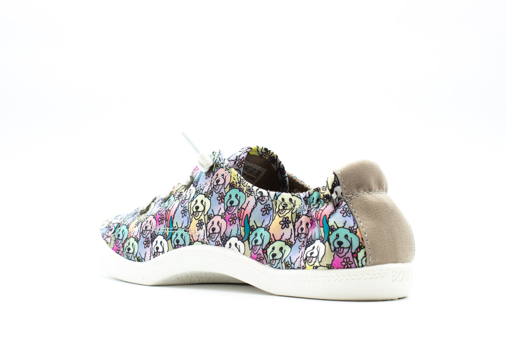 Get a pawsomely cute look wearing the BOBS from Skechers™ Beach Bingo - Aloha Doodle shoe. This casual slip-on sneaker features a soft canvas upper with an allover 'Aloha Doodle' print and a cushioned Memory Foam comfort insole.