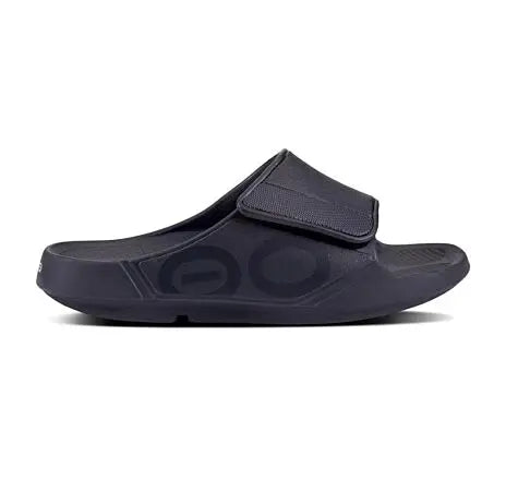 The OOAHH SPORT FLEX  sandal features revolutionary OOfoam™ technology that absorbs 37% more impact than traditional footwear foam materials to reduce the stress on your feet and joints. This technology aids in the recovery process and creates an incredibly comfortable sandal you can wear anywhere. An adjustable velcro upper for a more optimal fit.