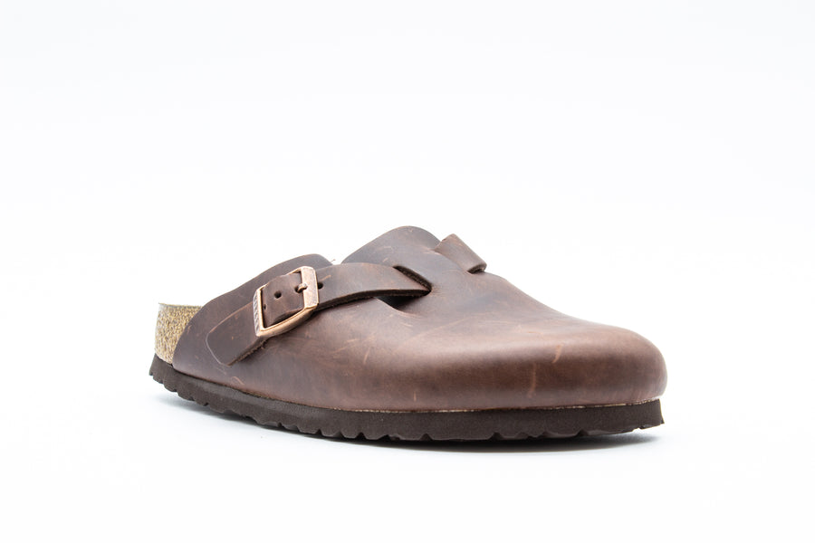 Ease effortlessly into the afternoon with the Birkenstock Boston Soft Footbed clog. Unique raised toe-bar promotes a healthy and natural stride. Cater to your unique fitting needs with an adjustable buckle strap across the saddle. The Birkenstock Boston Soft Footbed clog has a contoured cork footbed with an extra layer of cushioning that gently yields to the individual shape of your foot, while the non-slip EVA sole supports every step you take.