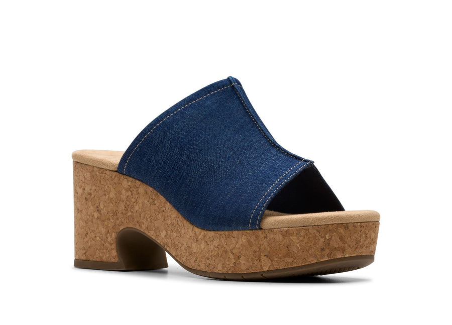 Defined by the super-soft dark denim textile upper, Clarks Nerisa Vine slides feature elevated cork wedge midsoles. They're ideal for wearing anywhere, thanks to the grippy outsoles that keep you sure-footed on any surface.