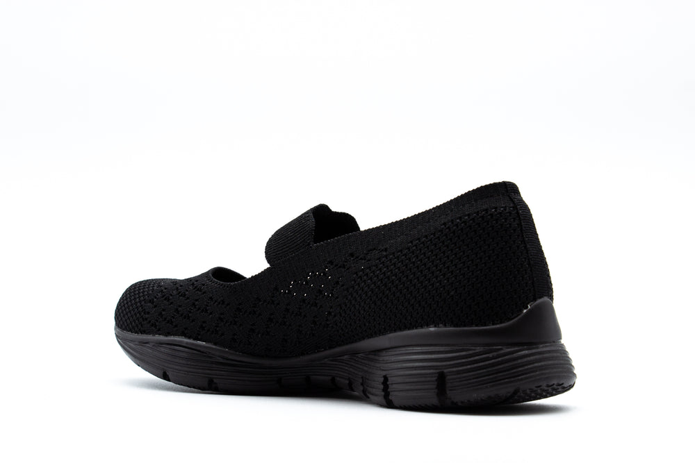 Score some serious comfort and versatile pretty casual style with the SKECHERS Seager - Power Hitter shoe. Soft woven flat knit mesh fabric upper in a casual comfort slip on mary jane with woven-in pattern detail and Air-Cooled Memory Foam insole.