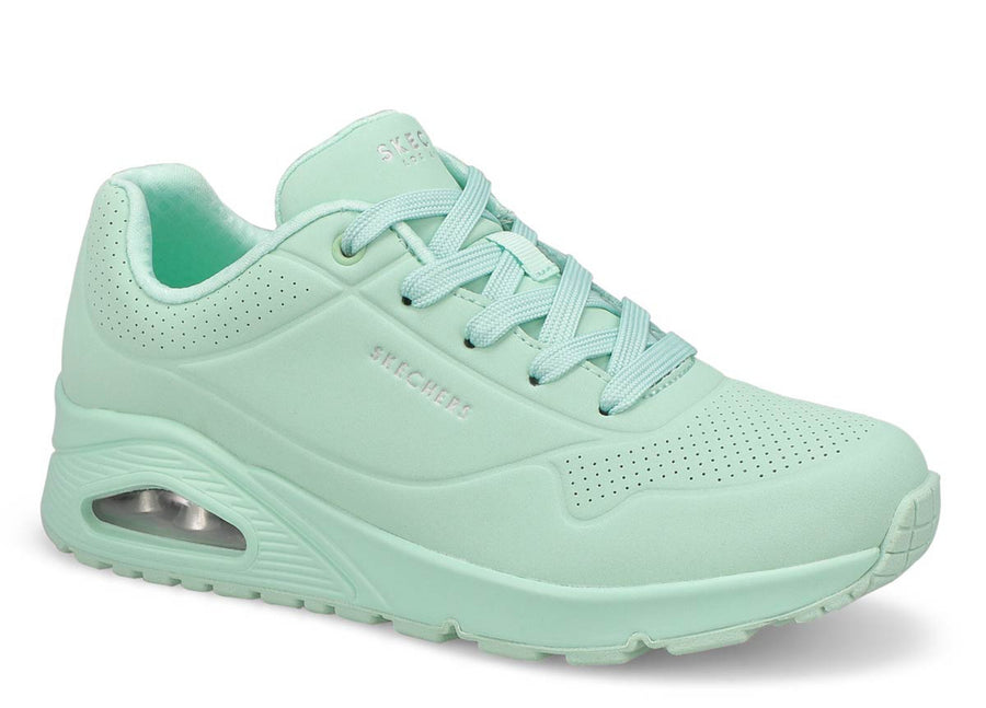 Classic air-cushioned comfort gets a fresh update in Skechers Street™ Uno - Stand on Air. This lace-up fashion style features a smooth perforated synthetic upper with an Air-Cooled Memory Foam insole, and a Skech-Air visible air-cushioned midsole.
