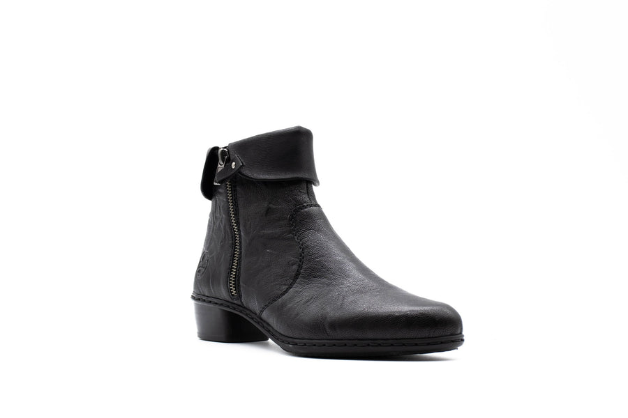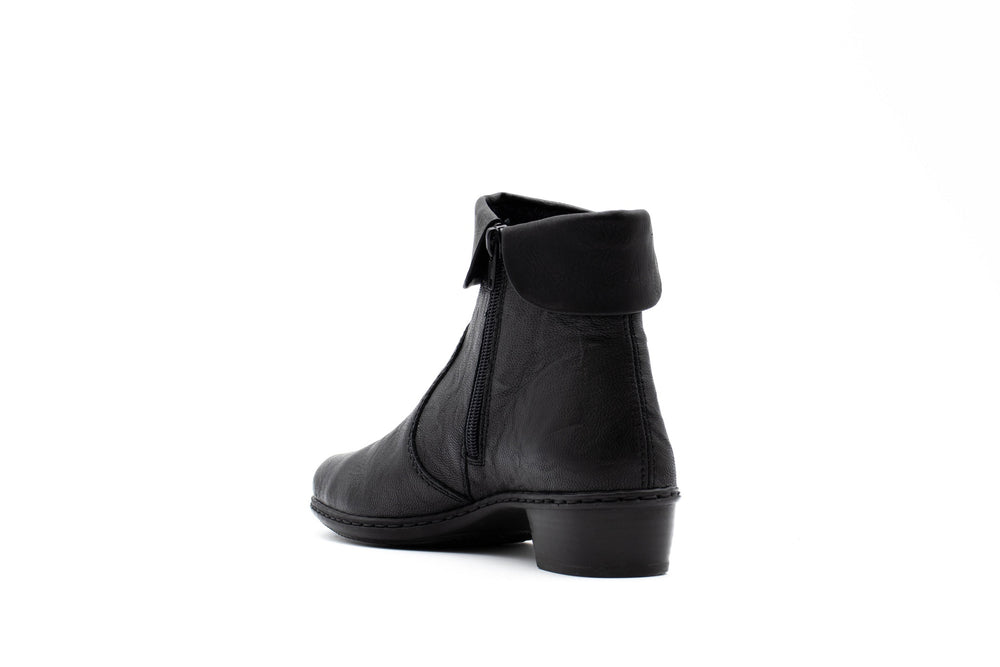 The fashionable ankle boot Y07A8 for women made of genuine leather with velour lining is an all-rounder, which can not be missed in any wardrobe due to its variable use. With its smart design, it can be combined with both pants and a skirt. This beautiful boot out of the Rieker autumn-winter collection is practical, as it is equipped with two zippers and is also comfortable due to its small block heel height of 3cm.