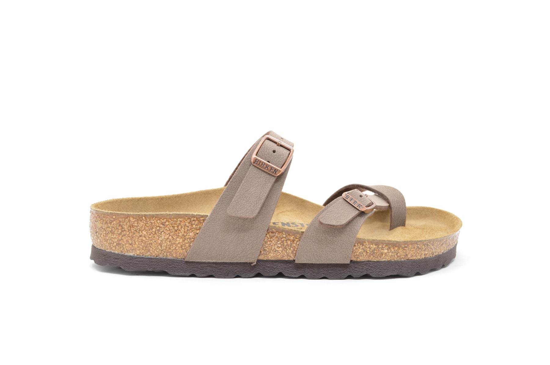 The BIRKENSTOCK Mayari thong sandal is a jaunty model with a toe loop. The impressive combination of design and wearability will see fashion-conscious men and women through the day with elegance and comfort. The upper is made from the skin-friendly, hard-wearing synthetic material Birko-Flor® in a sophisticated nubuck look which boasts a texture and color that could almost be mistaken for real leather.