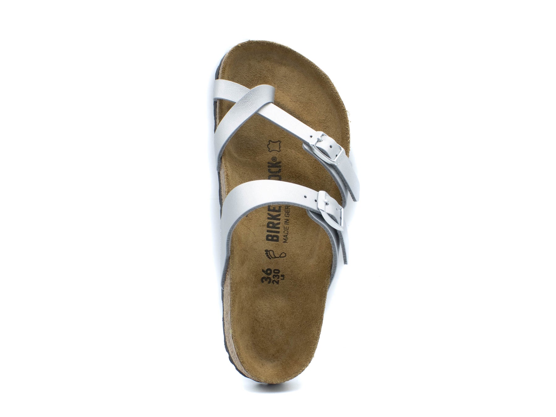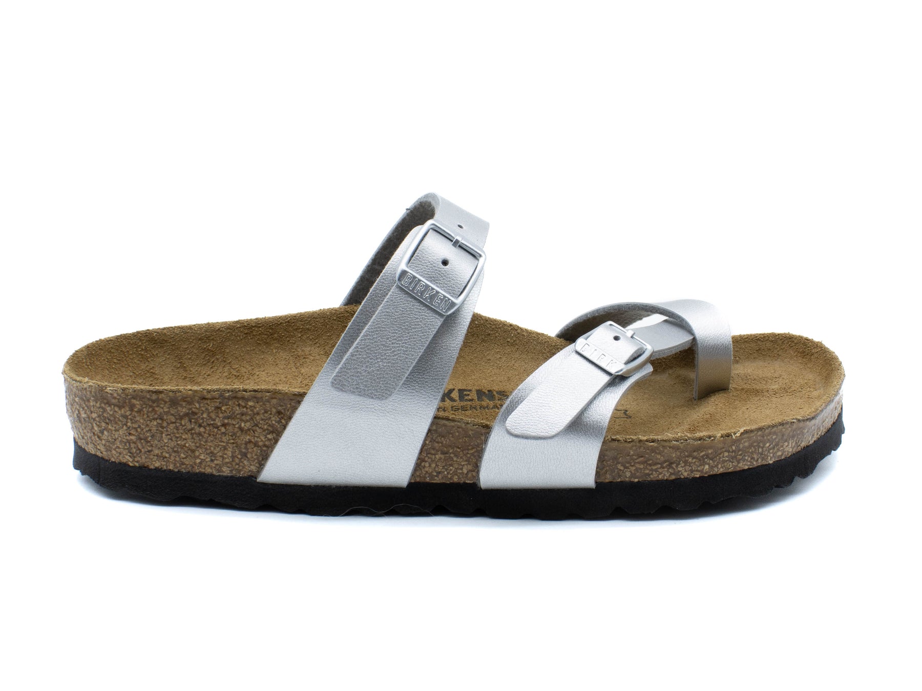 The Mayari from BIRKENSTOCK - an elegantly comfortable sandal with adjustable, crisscrossing straps that form a single loop around the toe. Classic support and adjustability, designed beautifully. Shown in Birko-Flor®.