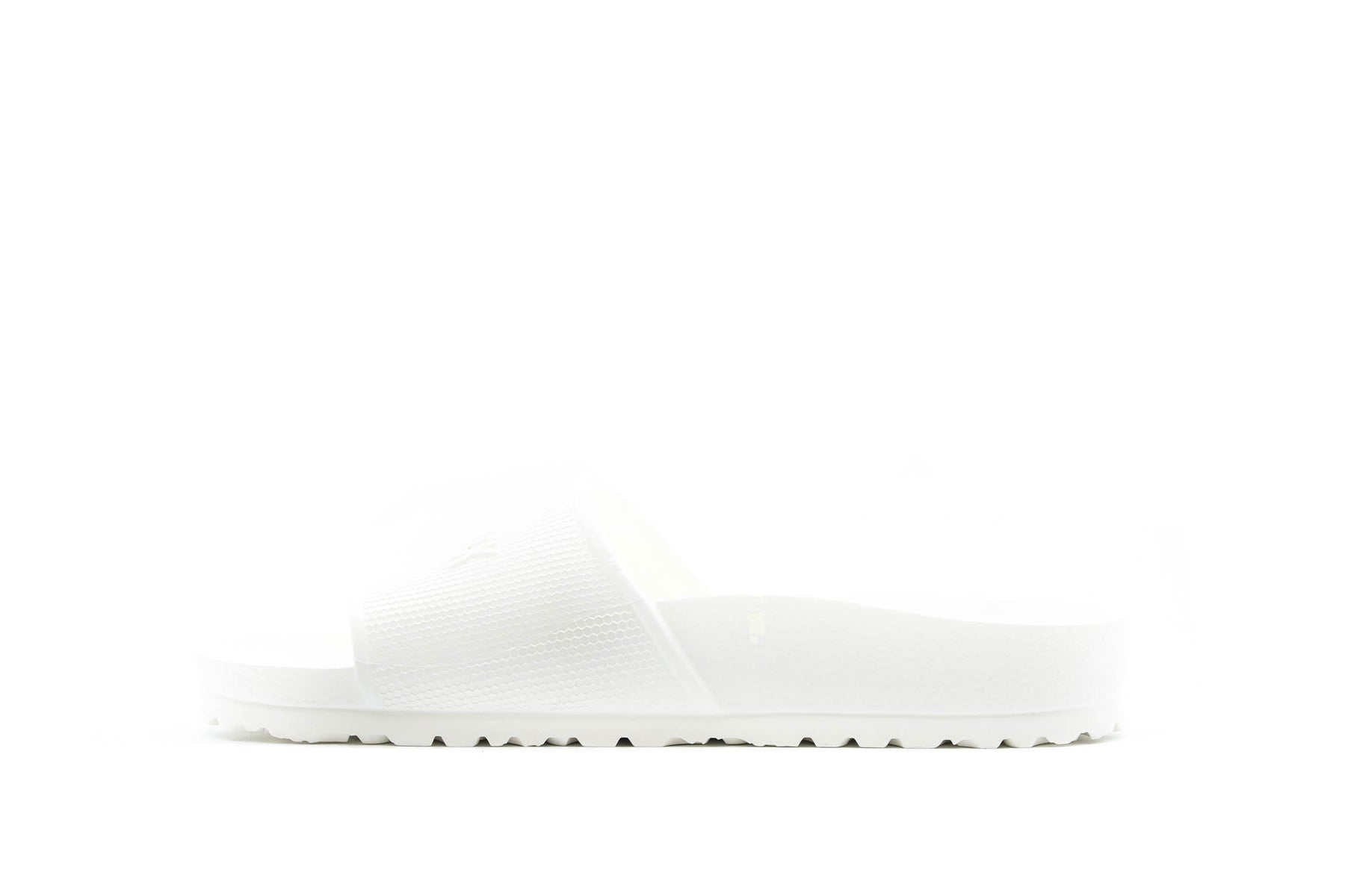 The Birkenstock Barbados is a sporty slide design with a hexagon pattern and logo lettering. Modeled on the cork sandal, this sandal is made from one piece of light, flexible and waterproof molded EVA.