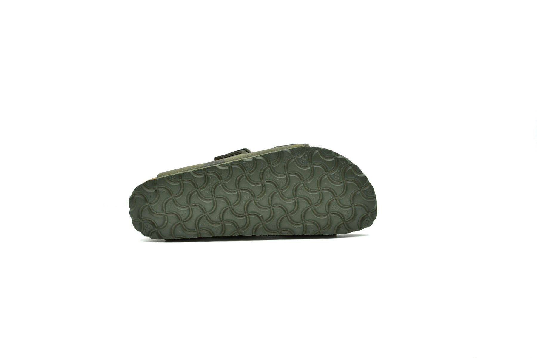 The legendary two-strap design from BIRKENSTOCK - the Arizona. Iconic style complemented with the signature comfort of the BIRKENSTOCK footbed. Featuring a muted camouflage print, as well as tonal buckles. With its additional foam layer, the soft footbed offers extra comfort – all day long. The upper is made from Birko-Flor®.