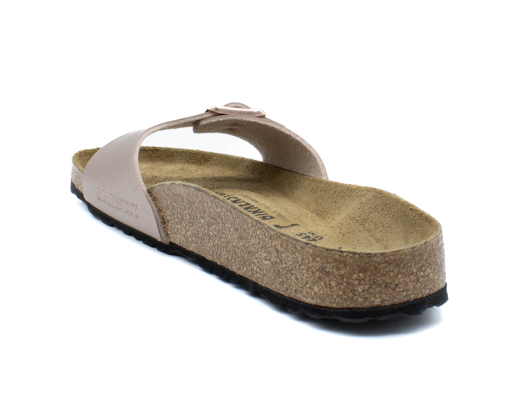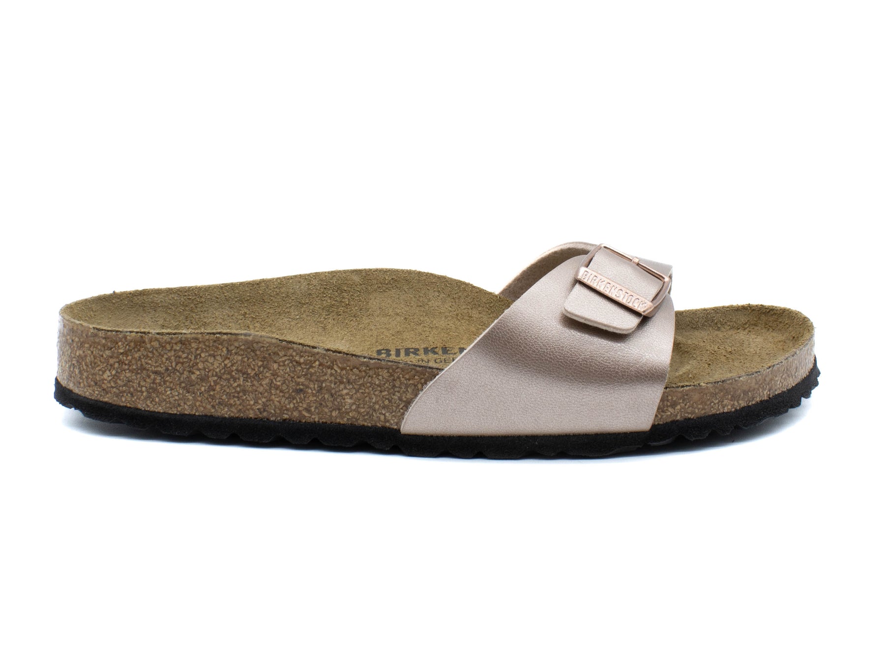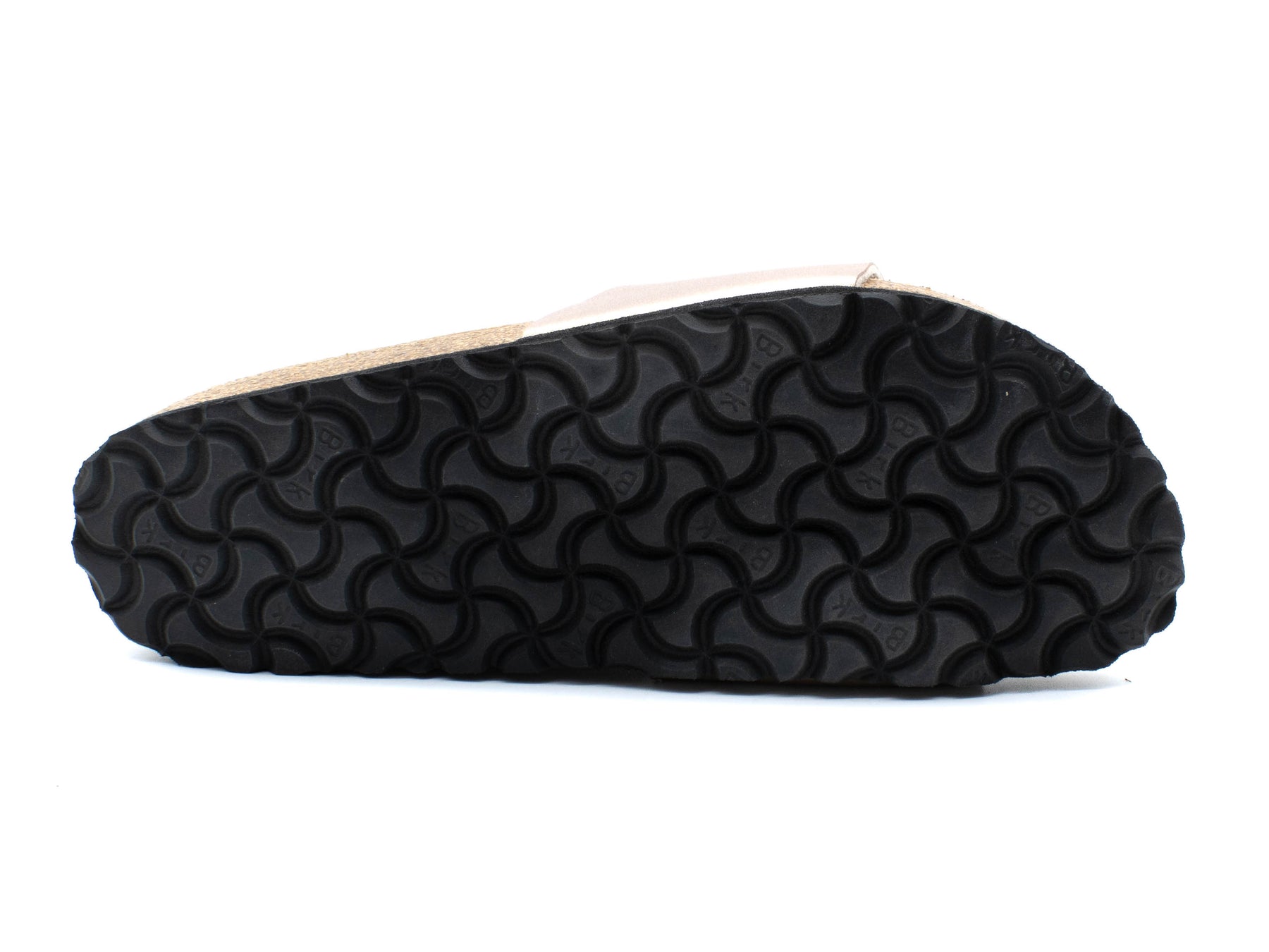The BIRKENSTOCK Madrid is the oldest member of the family of models, making it a veritable classic. Launched as a “gymnastics sandal” half a century ago, this simple single-strap model has gone on to become a firm fashion favorite. This version features a metallic glossy effect. The upper is made from the skin-friendly, hard-wearing synthetic material Birko-Flor®.