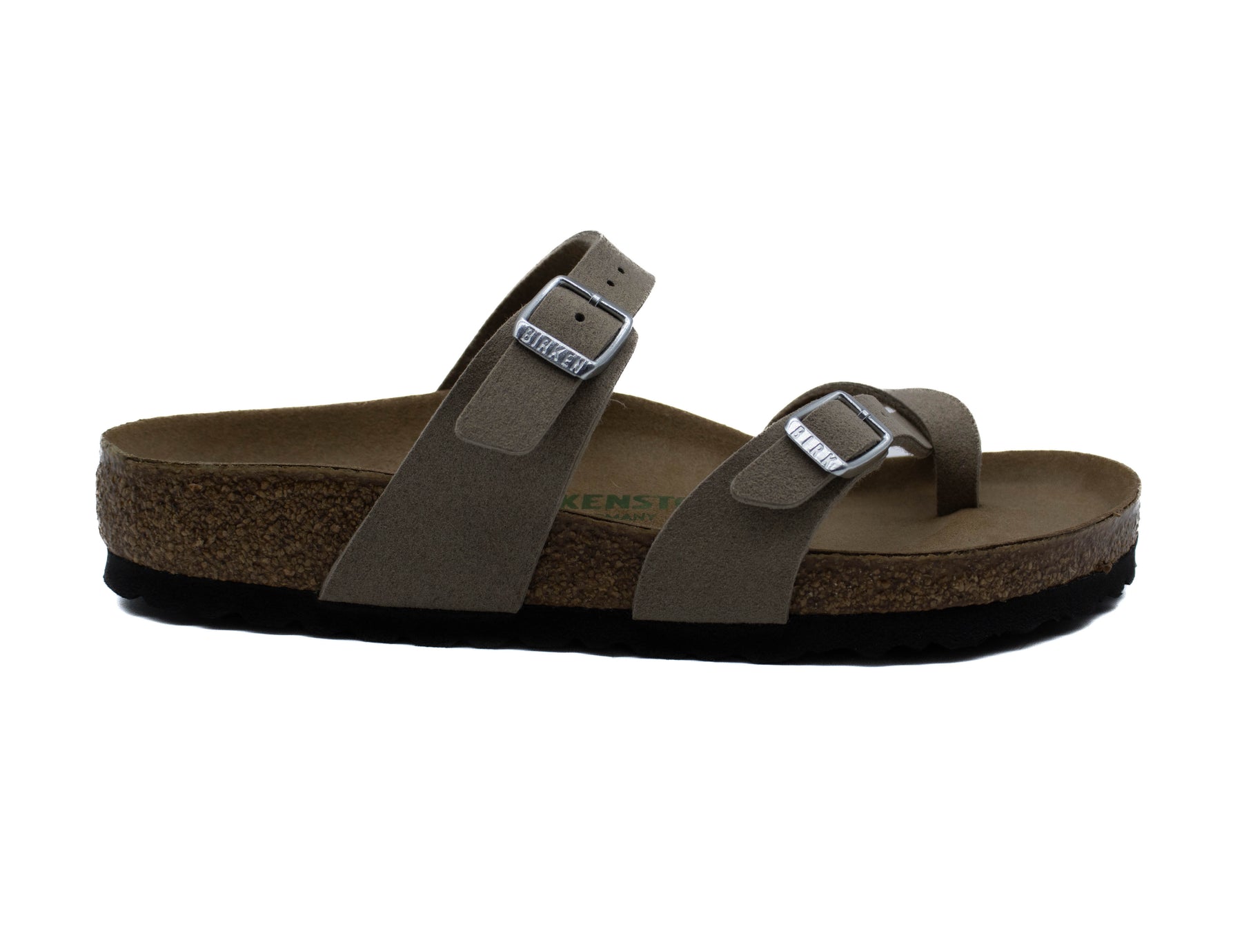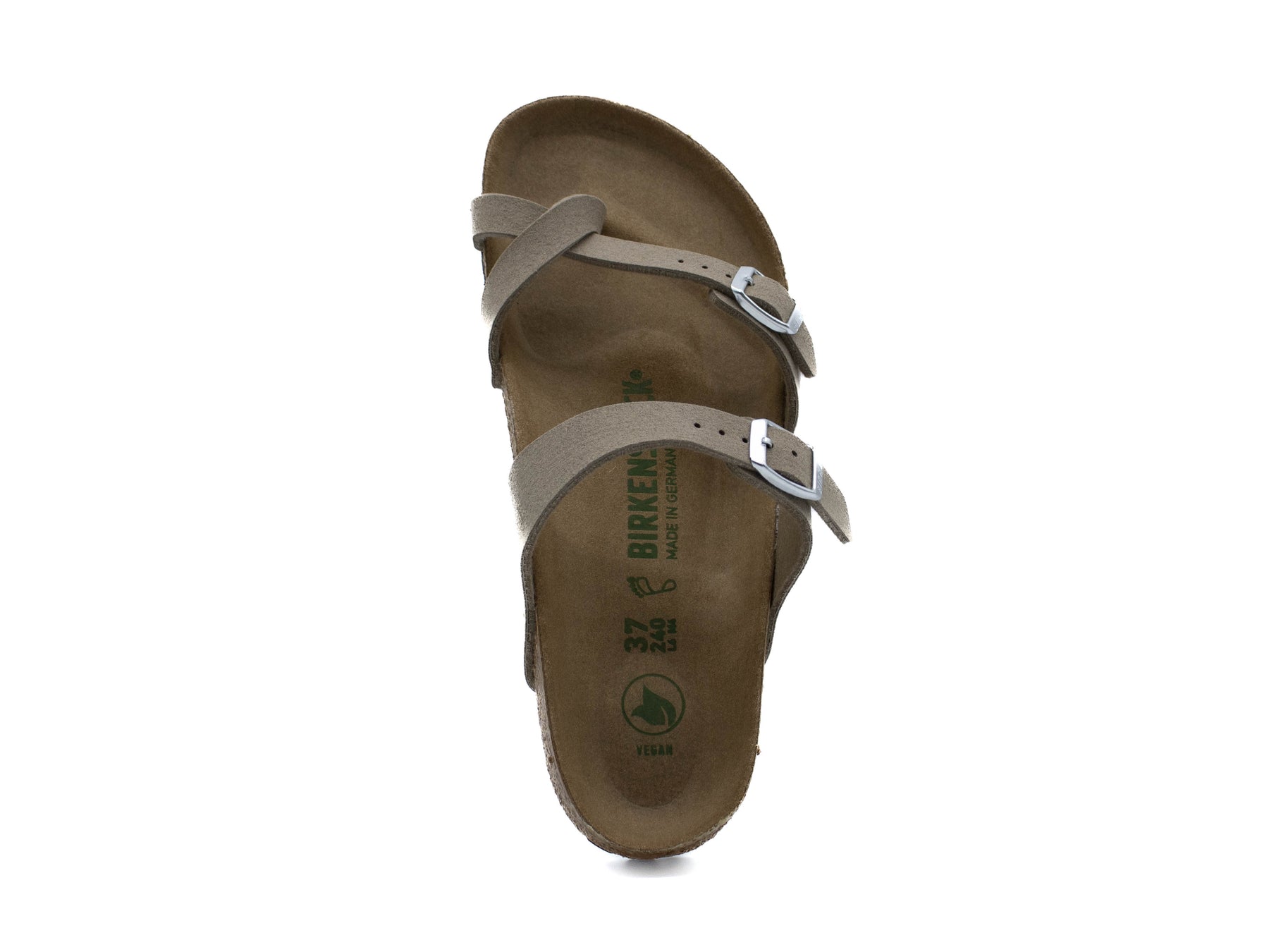 The Mayari from BIRKENSTOCK - an elegantly comfortable sandal with adjustable, crisscrossing straps that form a single loop around the toe. Classic support and adjustability, designed beautifully. Available in vegan materials and includes an upper made from Birkibuc, a skin friendly, hard-wearing synthetic material