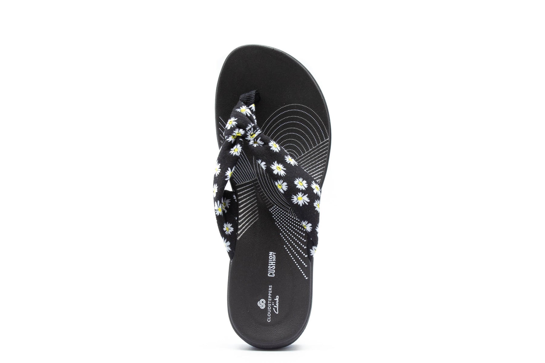 The Arla Glison from the Clarks® Cloudsteppers™ Collection provides the best of comfort technology with classic feminine appeal. A fabric upper gives it a playful edge and feels delicately soft between the toes. A Clarks Cushion Soft™ with OrthoLite® footbed ensures optimal comfort while an EVA midsole keeps it feather light. An ultra-wearable flip-flop with no shortage of personality.