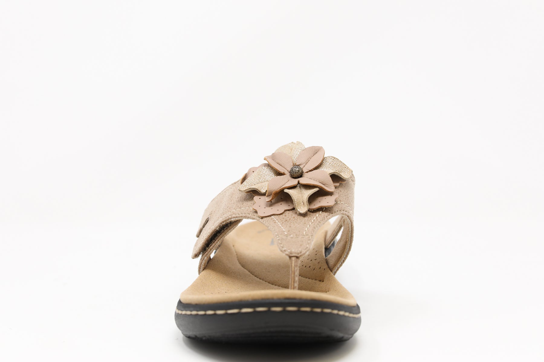 Women's Clarks, Laurieann Gema Sandal. This effortless thong sandal style is cute, comfy and fully adjustable. You will love the pretty floral design and the flexible and lightweight sole.
