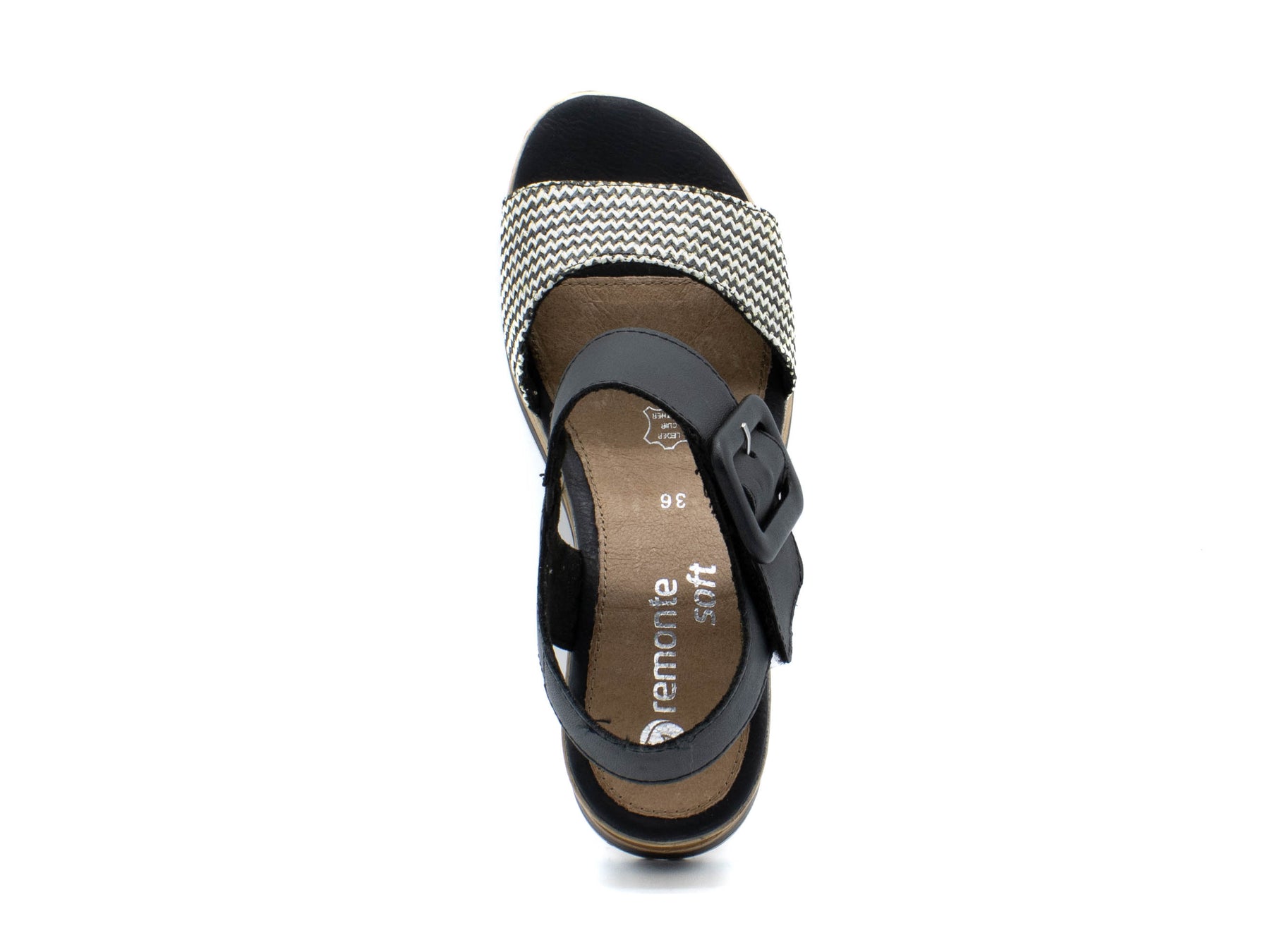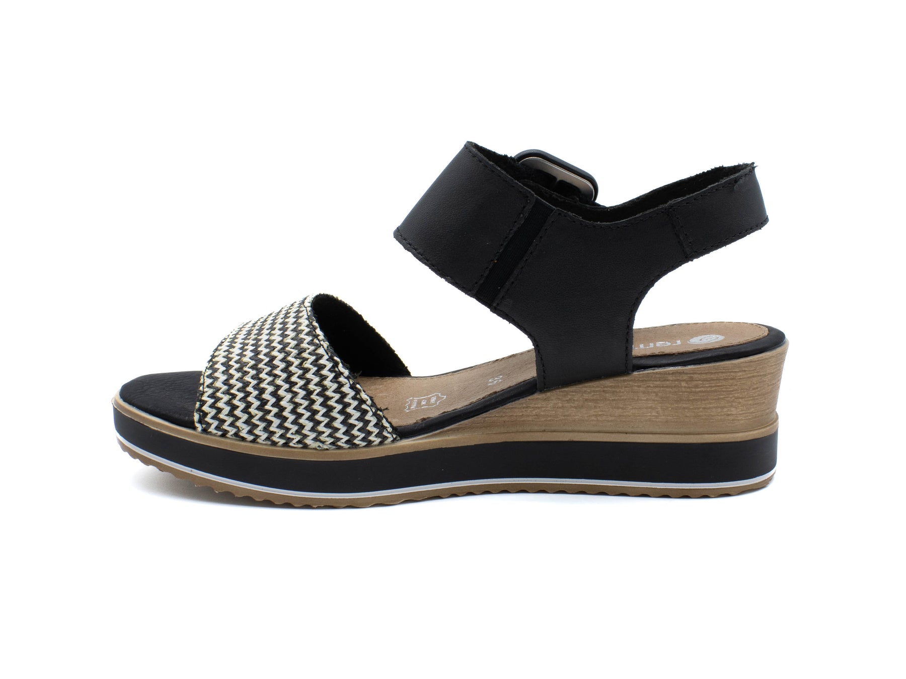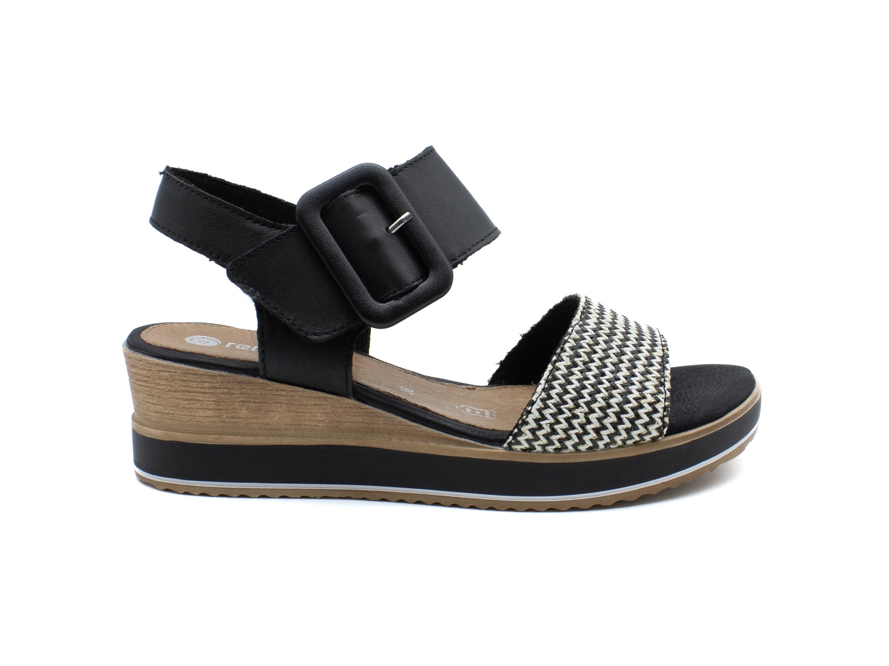 Step into effortless chic with the Remonte Siradia Black White Wedge Sandal, a perfect blend of style and comfort. Featuring a faux buckle detail for added flair, these sandals elevate any ensemble with their sophisticated monochrome design. Crafted with Remonte’s signature attention to detail, they offer both fashion-forward appeal and all-day wearability. Embrace versatile elegance with the Siradia Wedge Sandal – because every step should feel like a fashion statement!