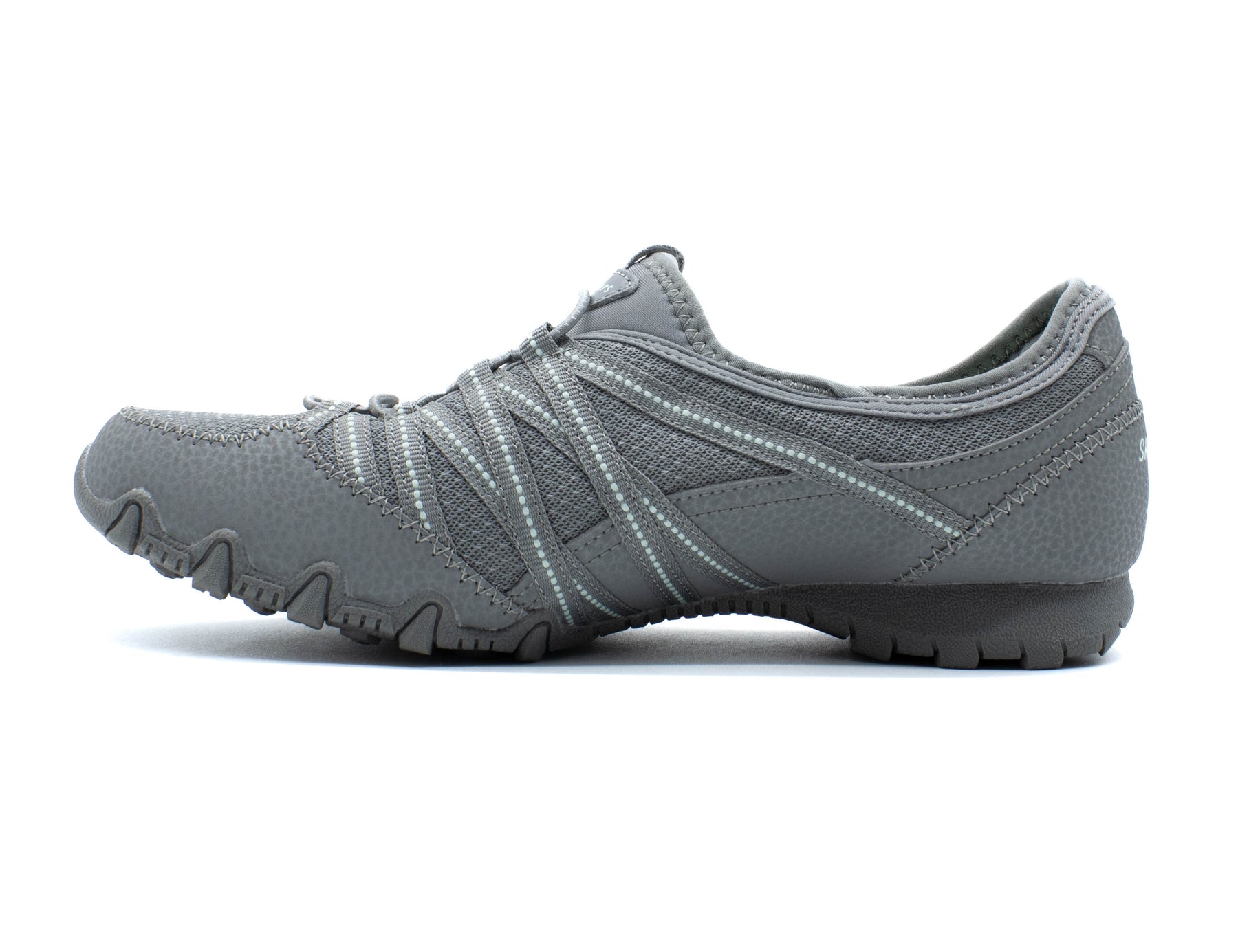 Add a little lite comfort to your look with the Bikers Lite grey sneaker by Skechers. Featuring a soft fabric upper with stretch laces and a cushioned Skechers Memory Foam comfort insole. These are super convenient, machine washable casual shoes perfect for walking! Smooth lining with a padded insole with bungee lace front for easy on and off.