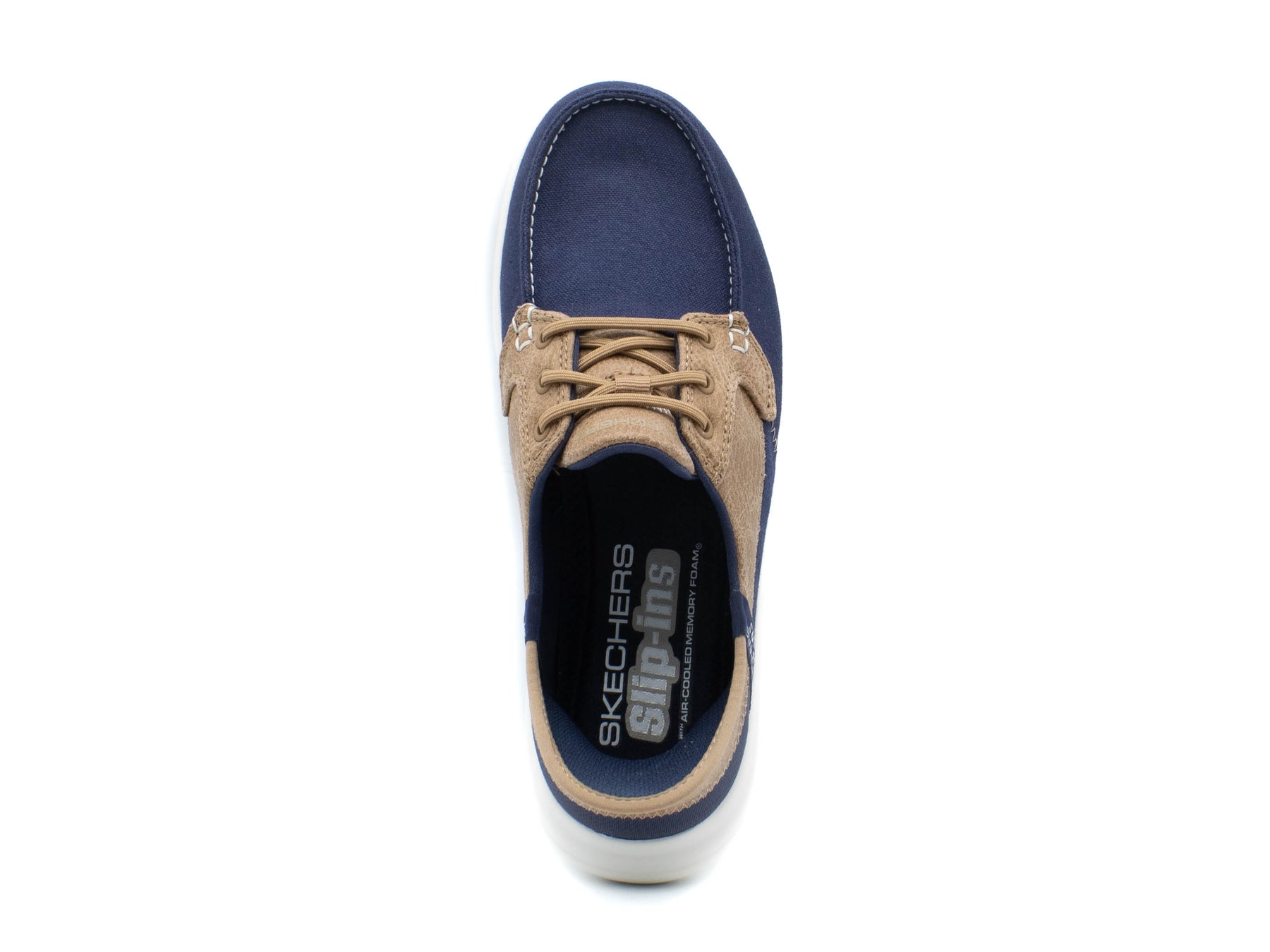 Step-in to convenient nautical comfort and cushioning wearing Skechers Hands Free Slip-ins® On-the-GO® Flex - Palmilla. This casual boat shoe style features a canvas and faux leather upper, our exclusive Heel Pillow™, a Skechers Air-Cooled Memory Foam® insole, lightweight ULTRA GO® cushioning, and a hands-free molded heel panel.