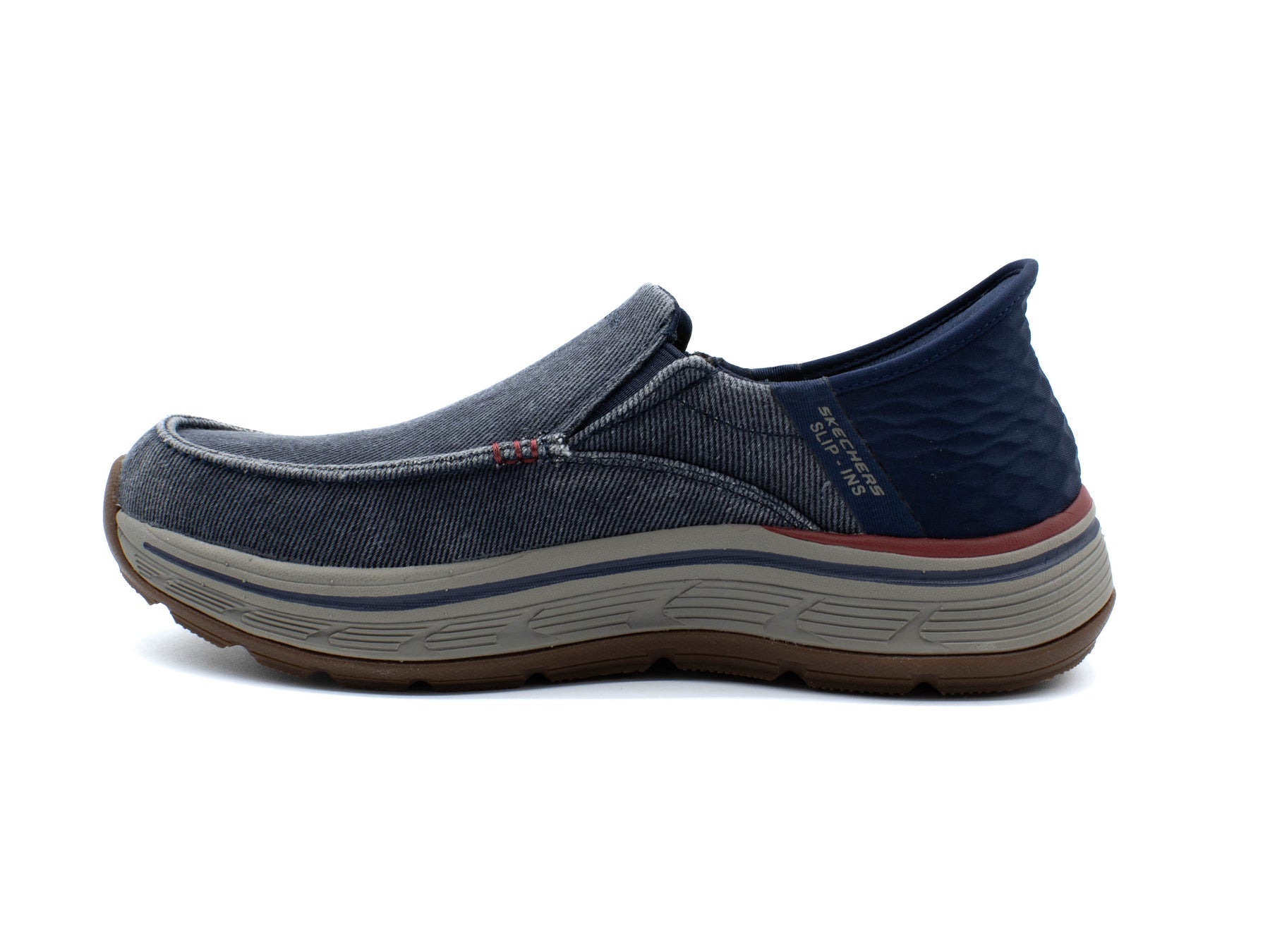 Step into easygoing comfort with Skechers Hands Free Slip-ins®: Remaxed - Fenick. Designed with our exclusive Heel Pillow™. This Relaxed Fit® laceless style features a woven fabric upper with a Skechers Air-Cooled Memory Foam® comfort insole and Goga Mat Arch™ for added support.