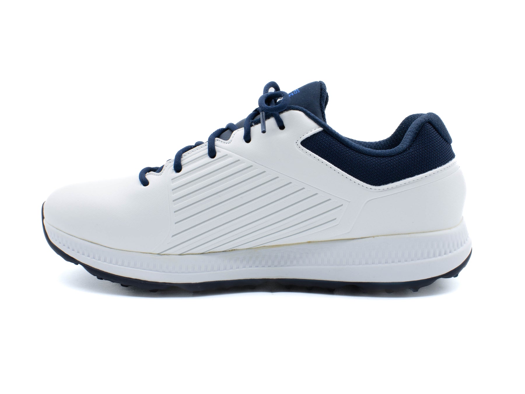Handle the course in supportive comfort and smooth style with Skechers GO GOLF® Elite 5 - GF. This waterproof lace-up golf design features a quarter embossed synthetic upper with a removable Arch Fit® insole and lightweight ULTRA FLIGHT® cushioning.