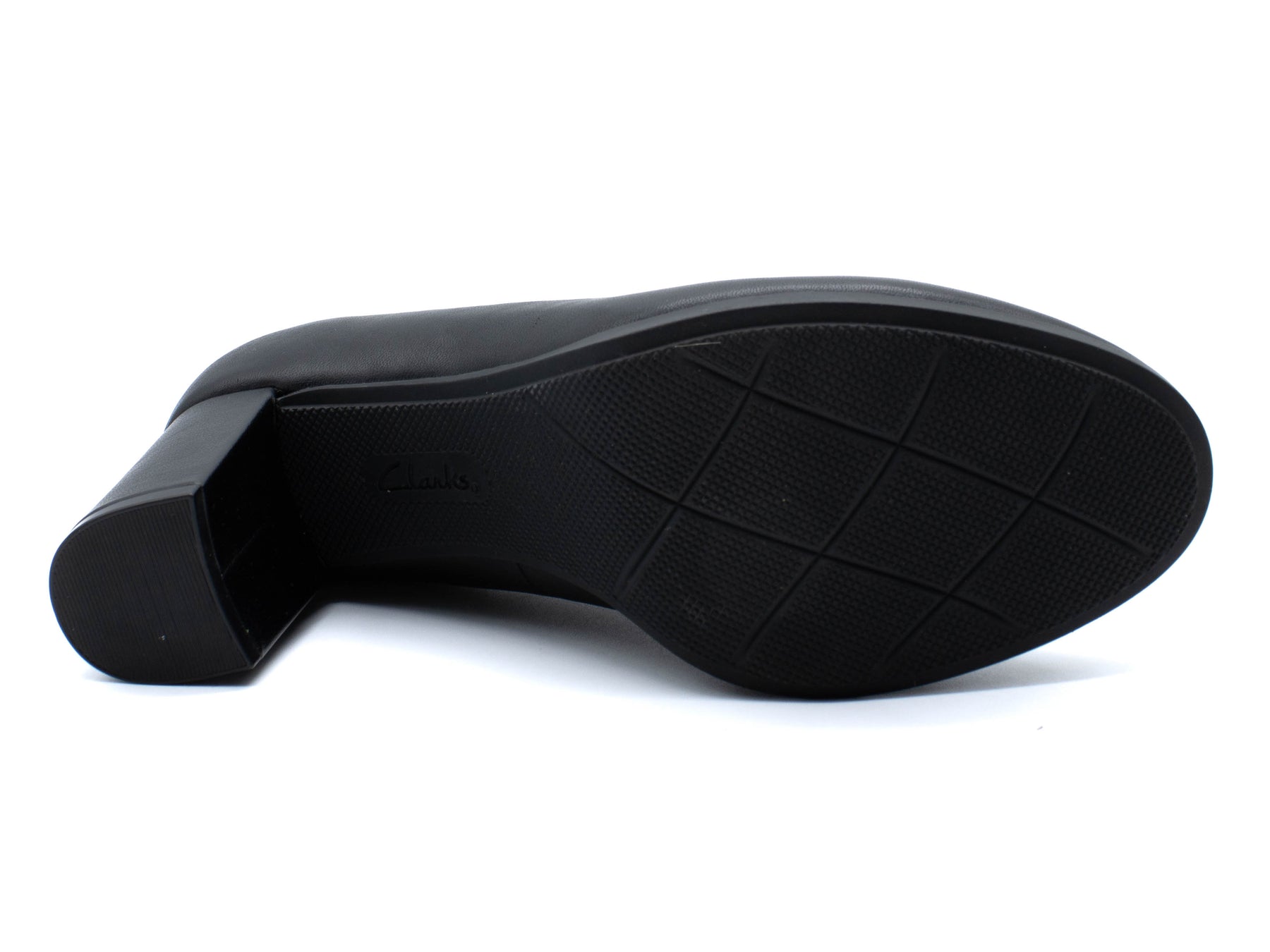 These women’s Clarks Bayla Skip black pumps offer the classic styling and daylong comfort. Crafted with leather upper, these dress shoes have a traditional round toe front and a slip-on design. Smooth textile lining and sockliner and an Ultimate Comfort footbed with a targeted cushioned heel pad provide superior underfoot cushioning and all-day comfort, while a nylon shank enhances stability and a TPR outsole provide sturdiness.