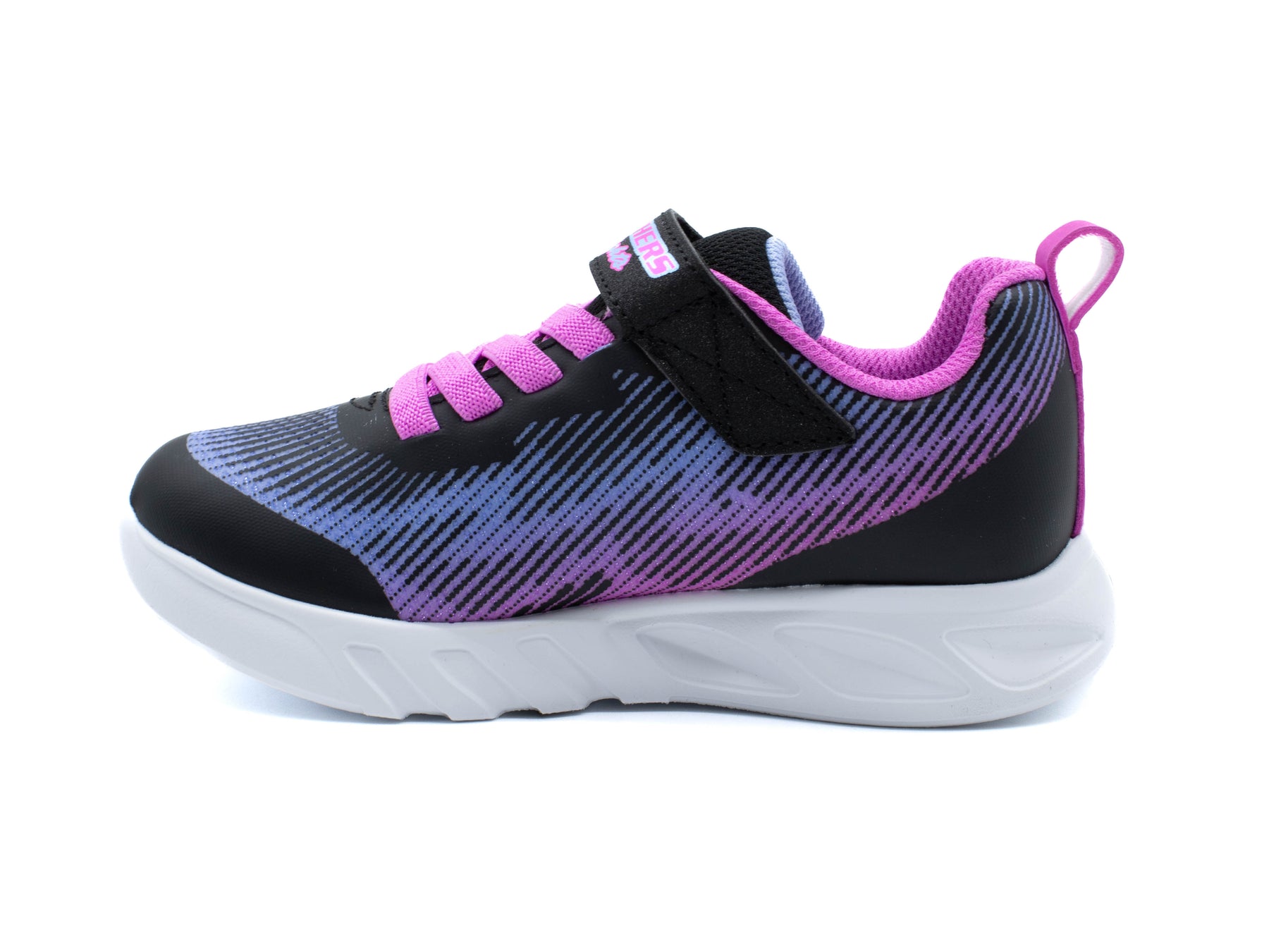 Keep it sporty in the easy-wearing comfort with Skechers Microspec - Rejoice Racer black sneaker from Skechers. This sleek lightweight pull-on features an athletic mesh and synthetic upper with flat stretch laces.The Microspec Rejoice Racer black sneaker is a lightweight slip on style sneaker design with a flexible traction outsole.