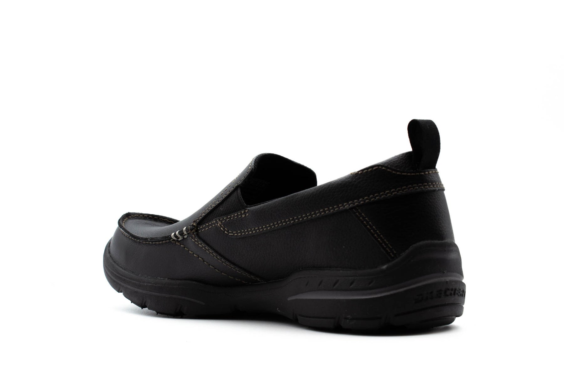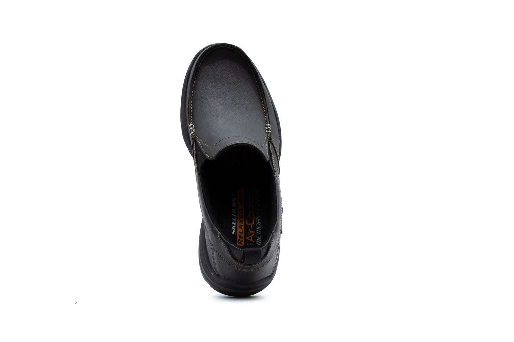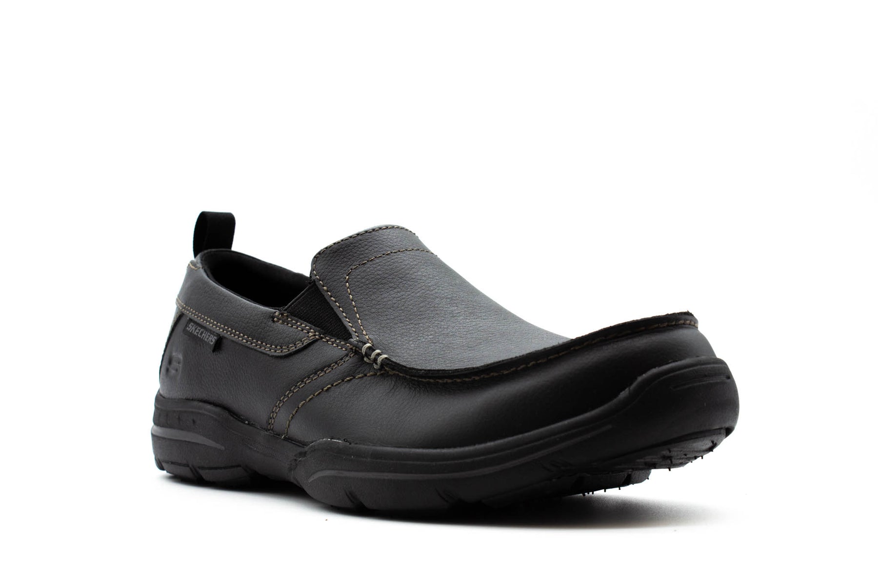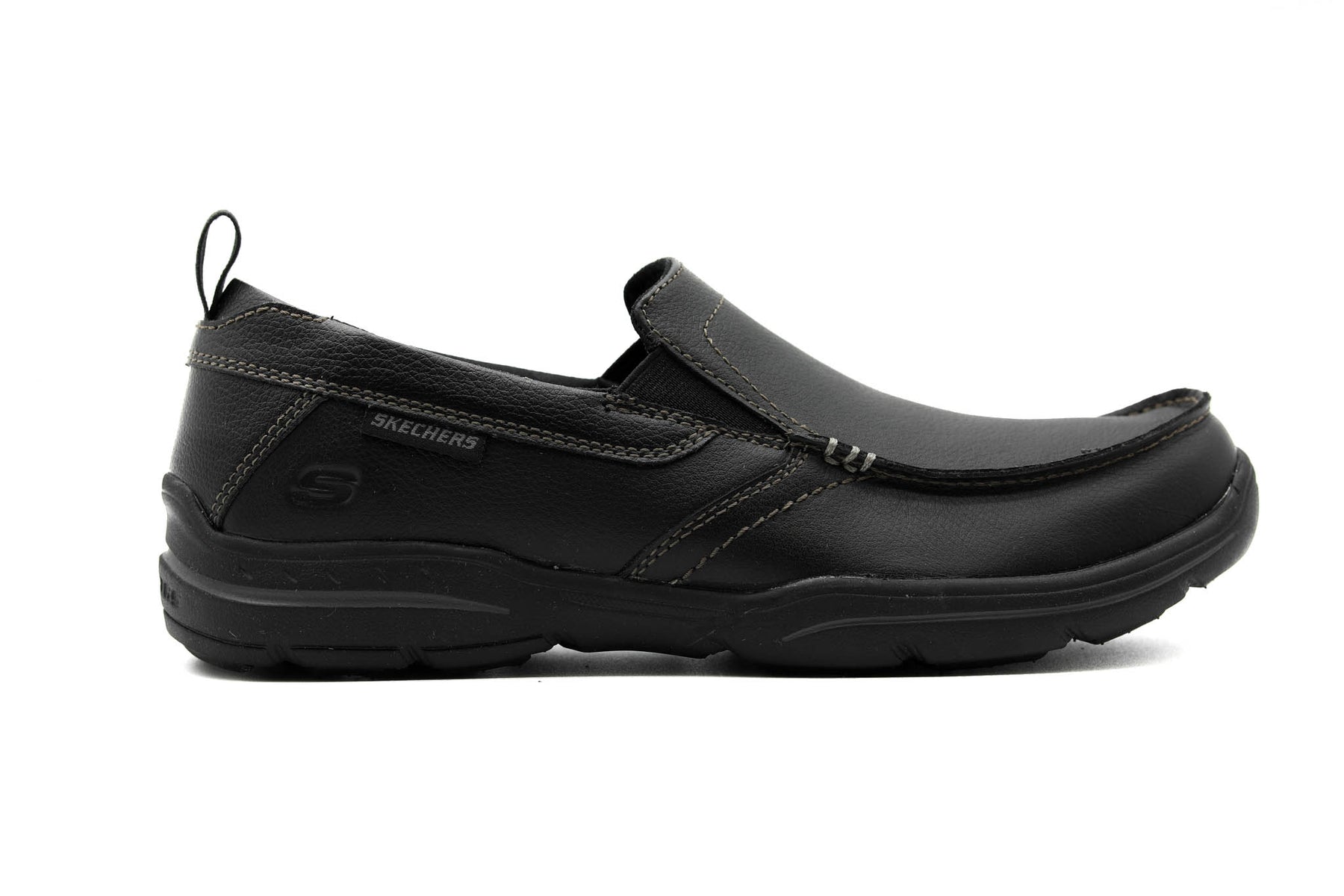 Turn loafing into a fine art form wearing the SKECHERS Relaxed Fit®: Harper - Forde shoe. Smooth full grain leather upper in a slip on casual comfort loafer with stitching and overlay accents. Air-Cooled Memory Foam insole.