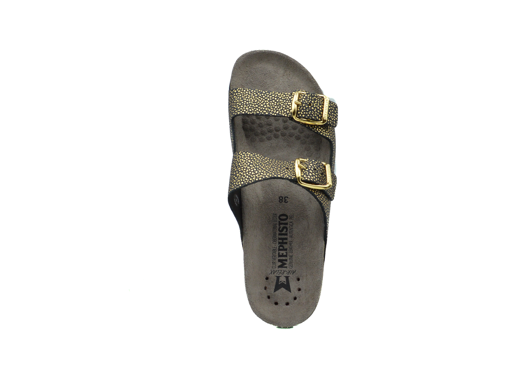 This lightweight ladies' mule is a must for a relaxed summer. The unique SOFT-AIR technology, integrated in the cork midsole, guarantees an effortless walk. The AIR-RELAX technology respects the anatomy of the foot to prevent fallen arches. Adjustable straps with buckle fastening.