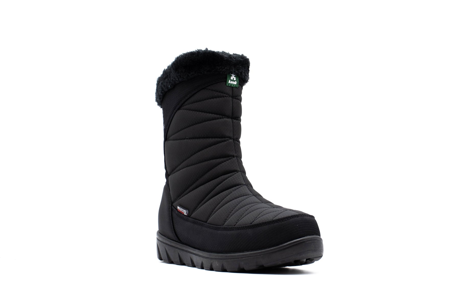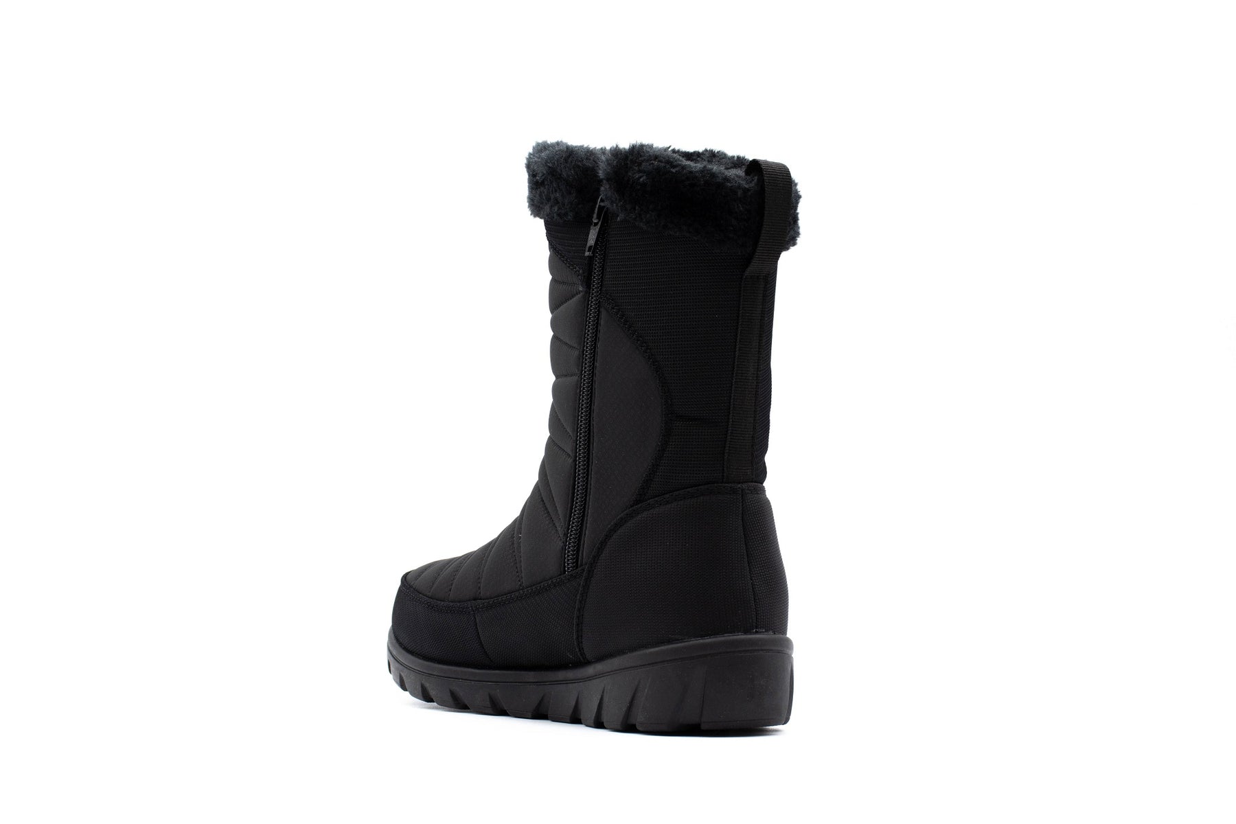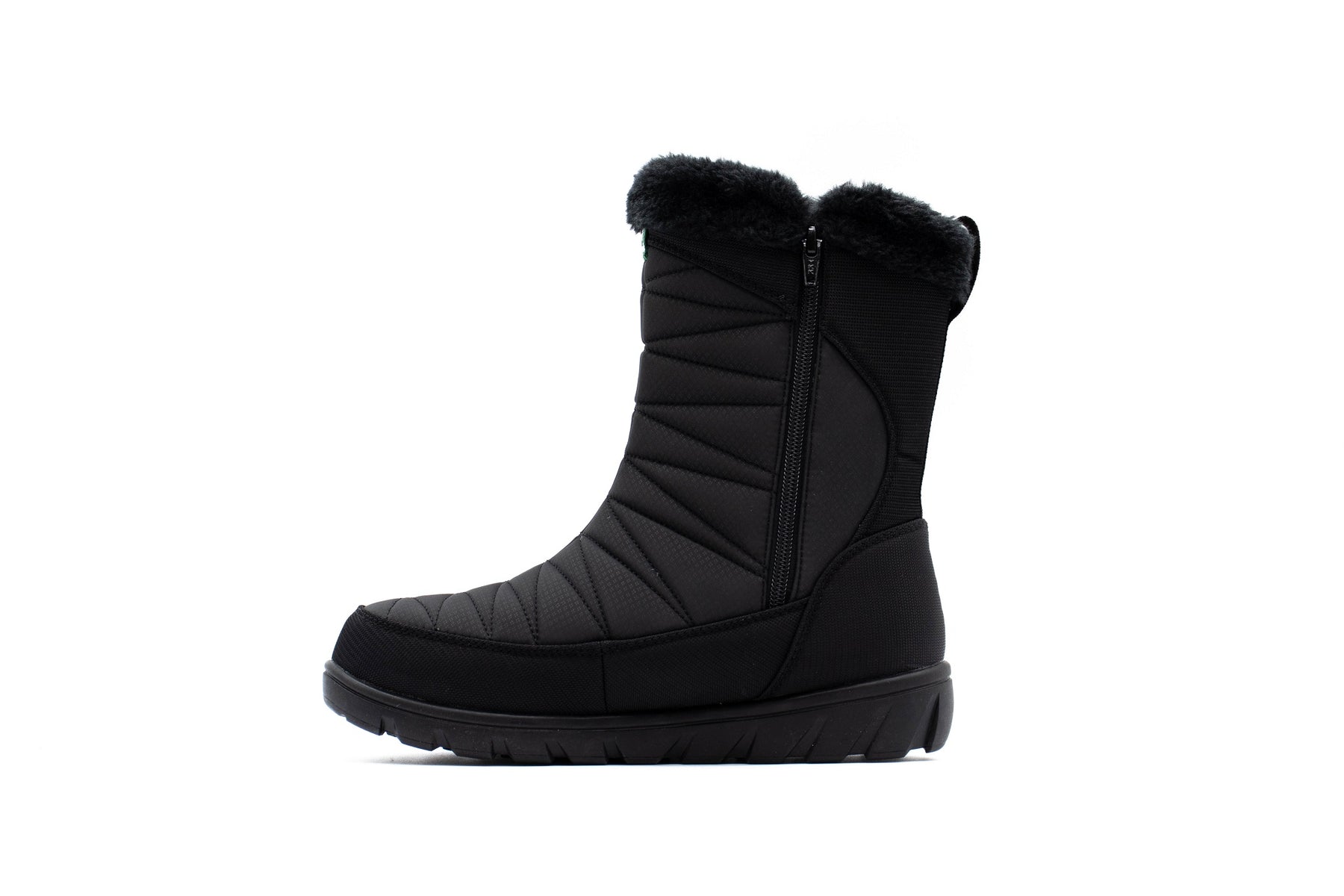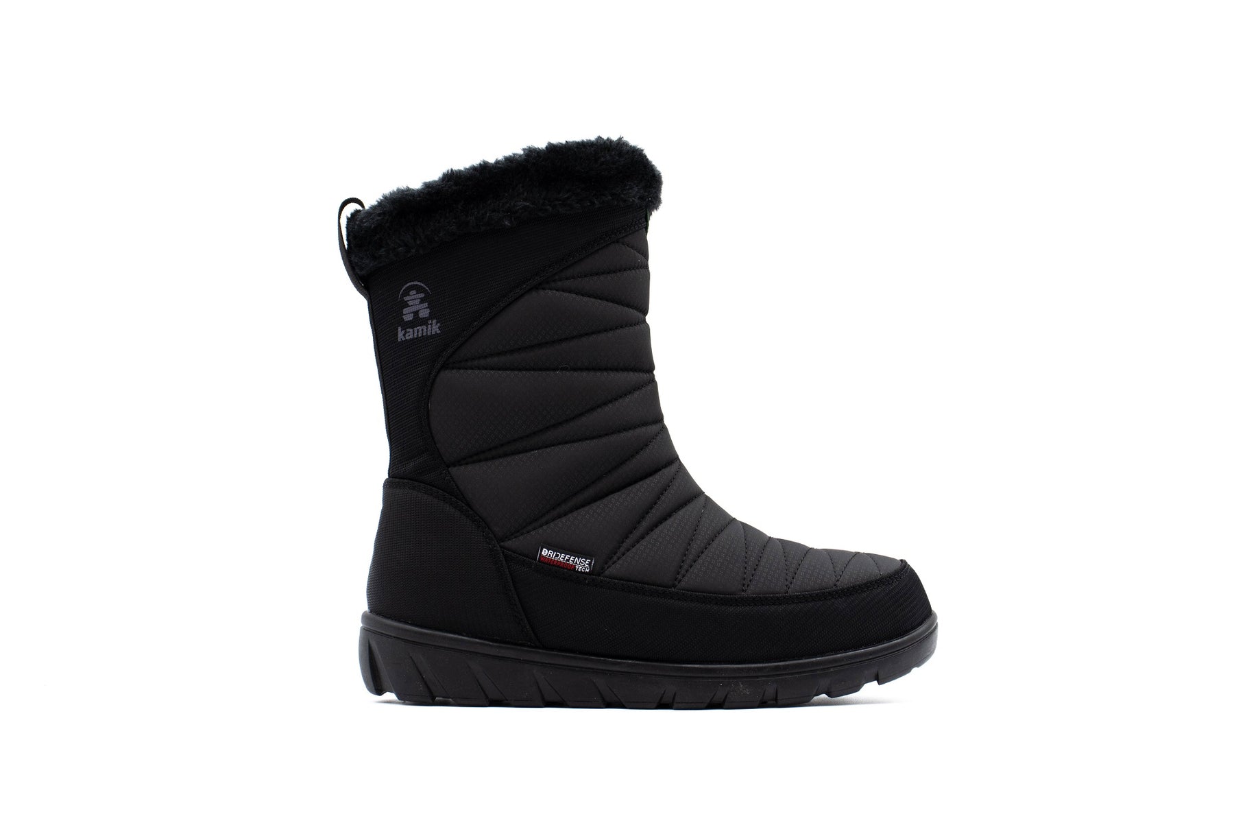 - Waterproof nylon upper with faux fur snow collar and inside zipper